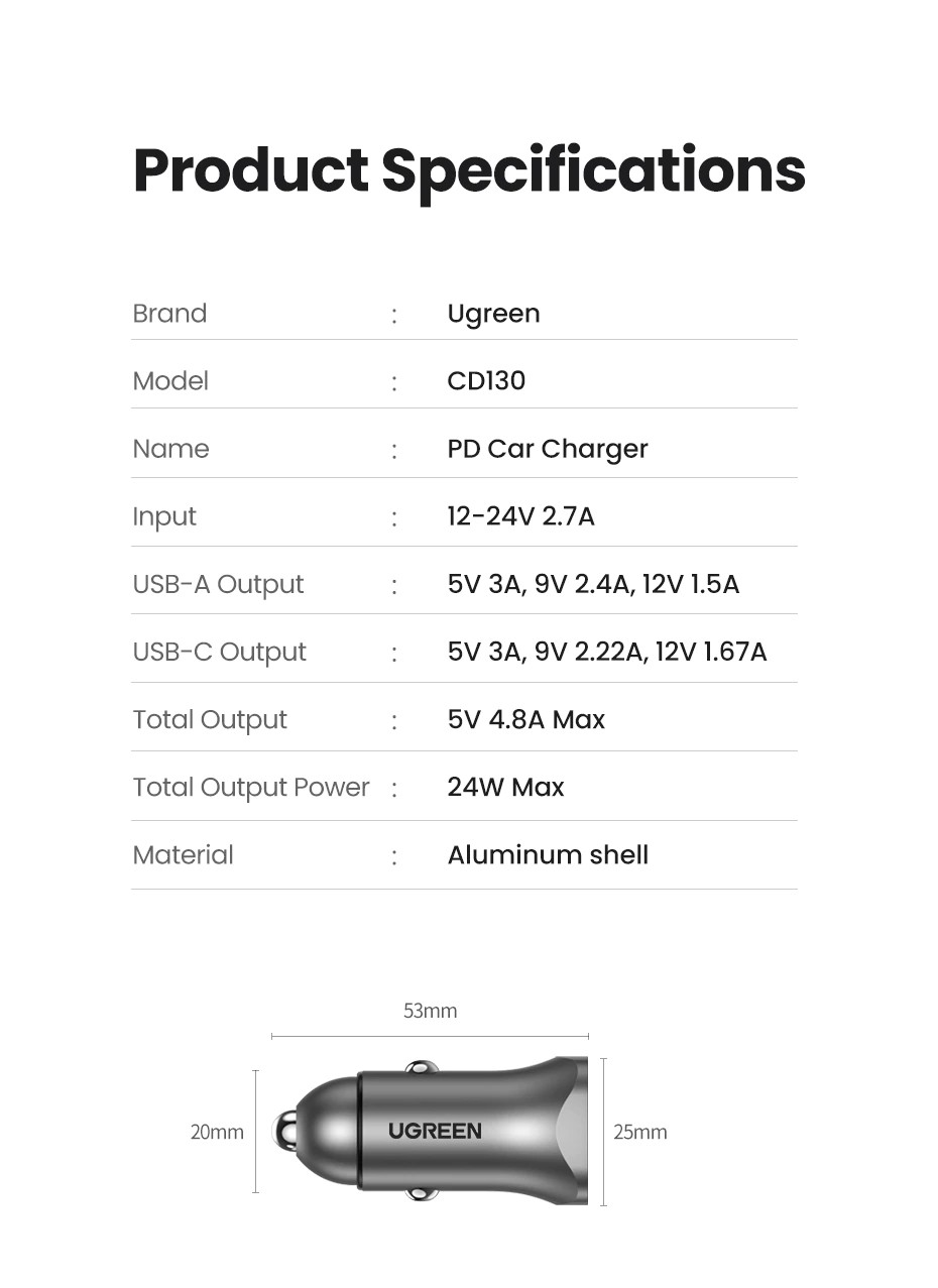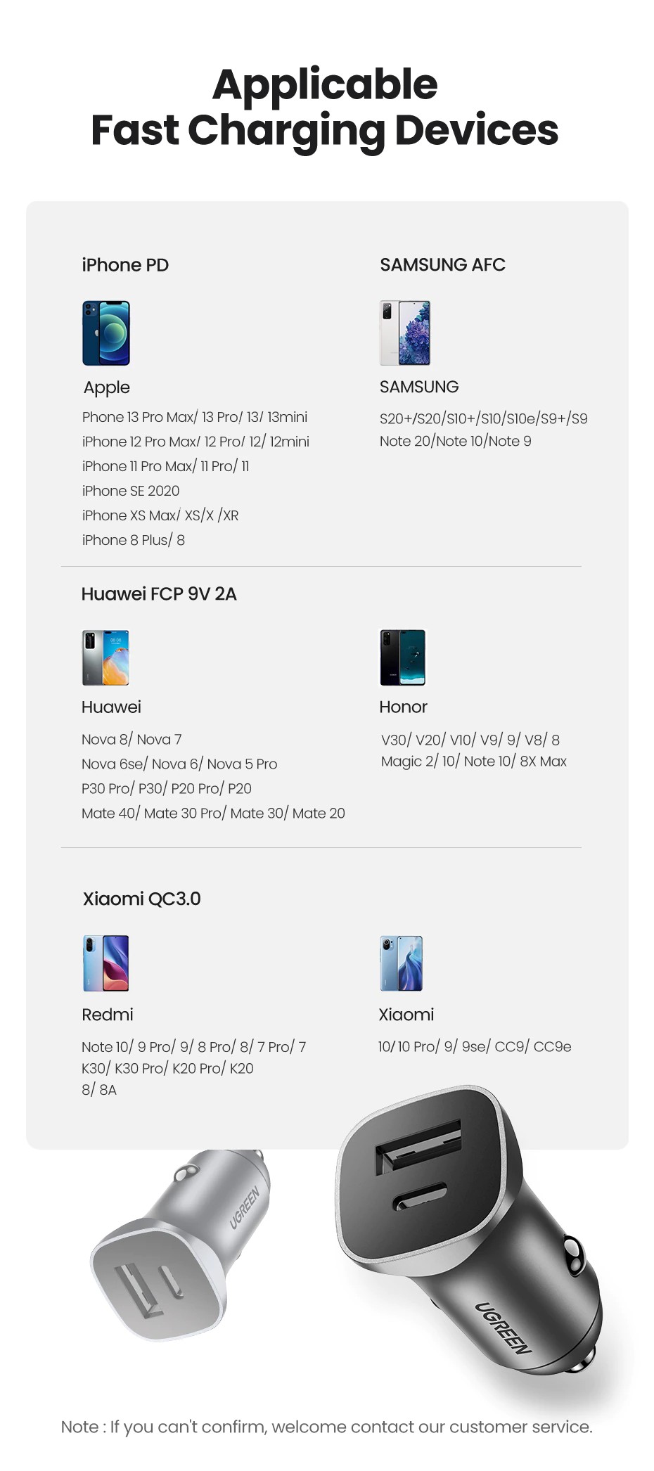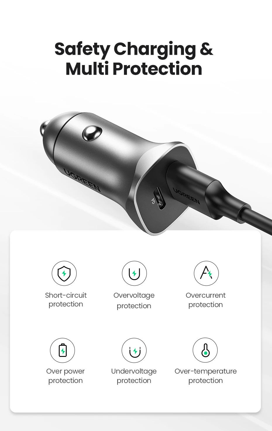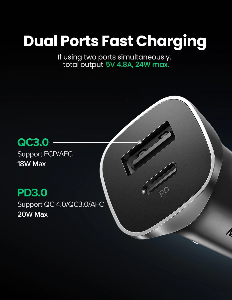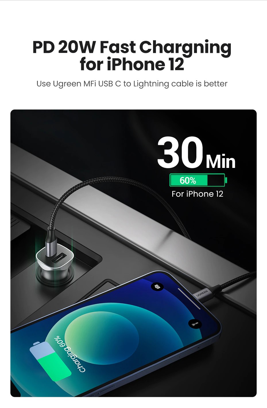 Ugreen Autolader Type C Snelle Usb Charger Voor Iphone 13 12 Xiaomi Auto Opladen Quick 4.0 3.0 Lading Moible Telefoon Pd Charger