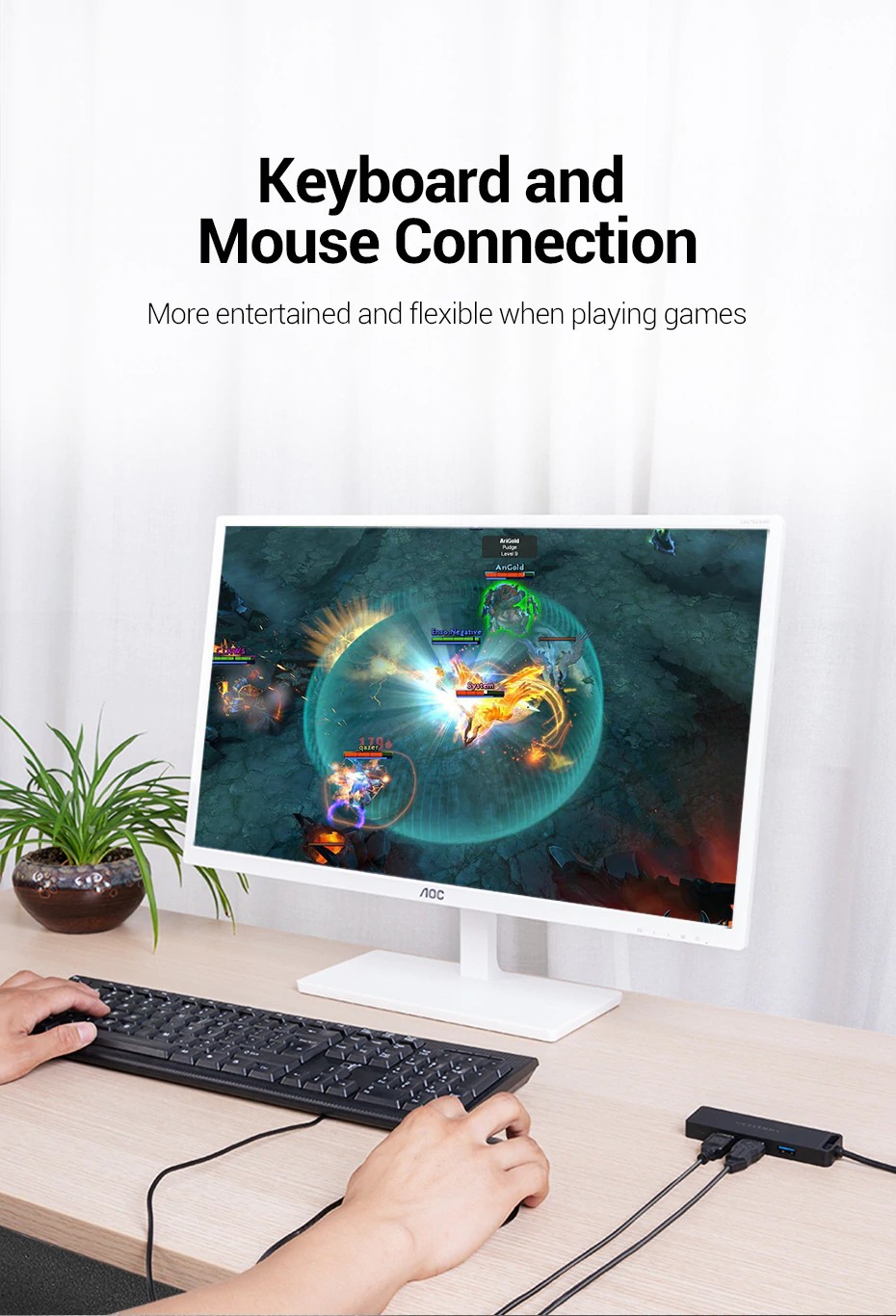 INTERVENTIE 4-port USB 3.0 hub gewoon helpt u maximaal 4 USB apparaten op uw PC of Laptop, zoals externe harde schijven, USB flash drives, muis, toetsenbord, USB hoofdtelefoon, speakers, kaartlezer, en veel meer usb-apparaten. Turn 1 van uw computer USB 3.0 poorten in 4, houdt je weg van de problemen van inpluggen & loskoppelen herhaaldelijk.