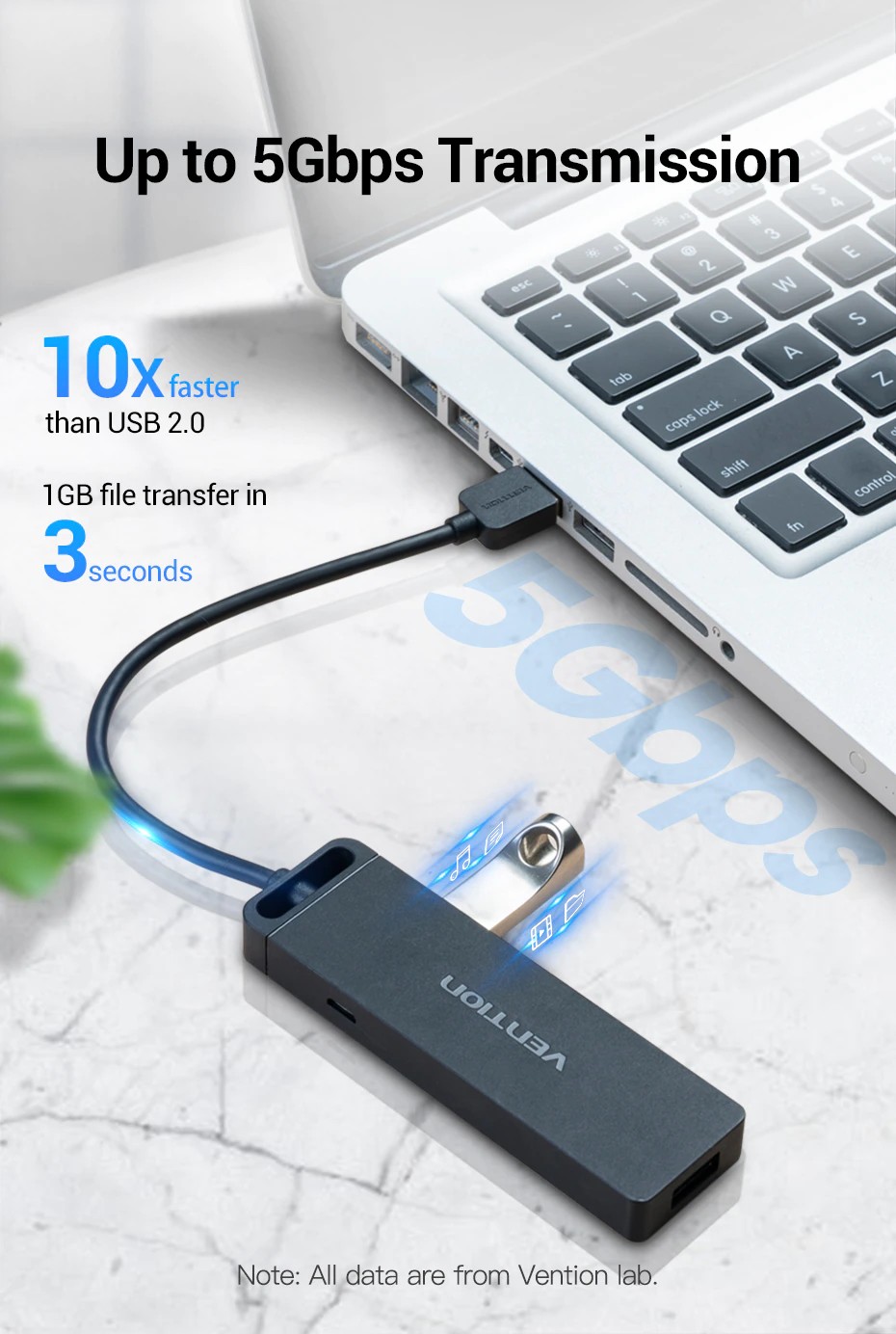 INTERVENTIE 4-port USB 3.0 hub ondersteunt super-snelle data overdracht tot 5Gbps- 10X sneller dan USB 2.0, waarmee u transfer HD films of massive bestanden in slechts seconden.