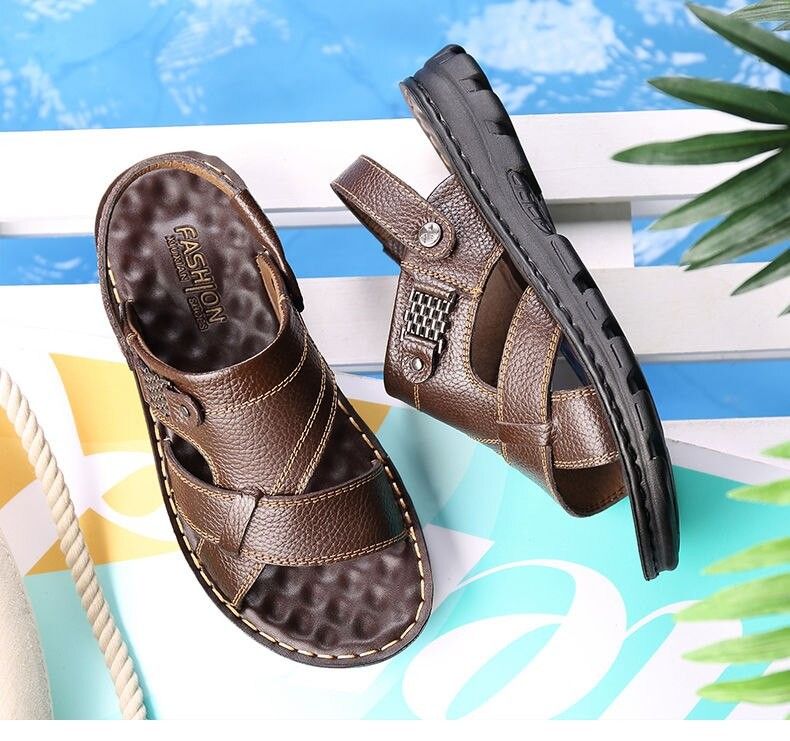 Waterdichte Antislip Sandalen Koe Lederen Mannen Zachte Bodem Slijtvaste Slippers Dual-Purpose Ademend Sandalen