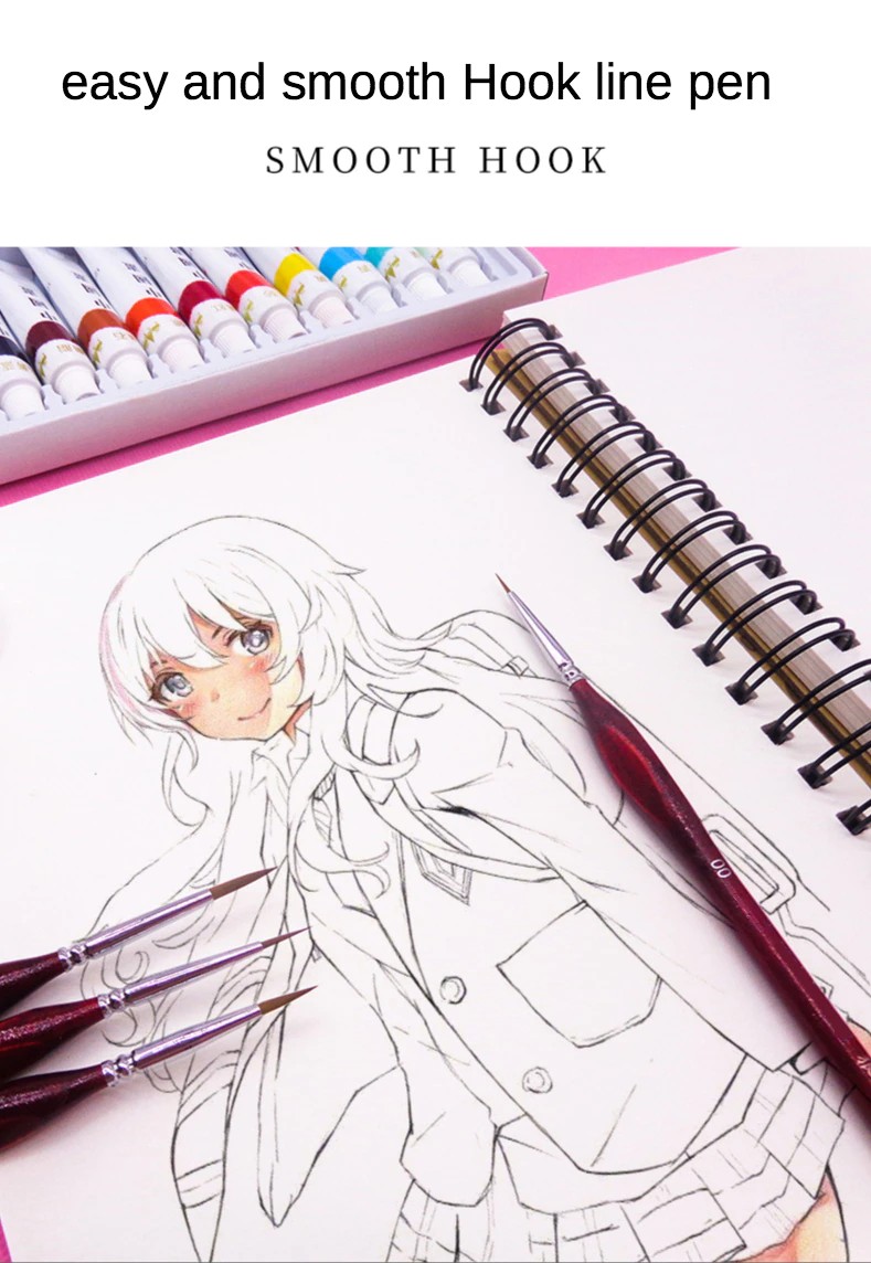 Wezel Haar Driehoek Berk Staaf Fijne Nail Art Studenten Speciale Lijn Tekening Gouache Kleur Takt Olie Borstel 4 Kleuren Haak Lijn Pen