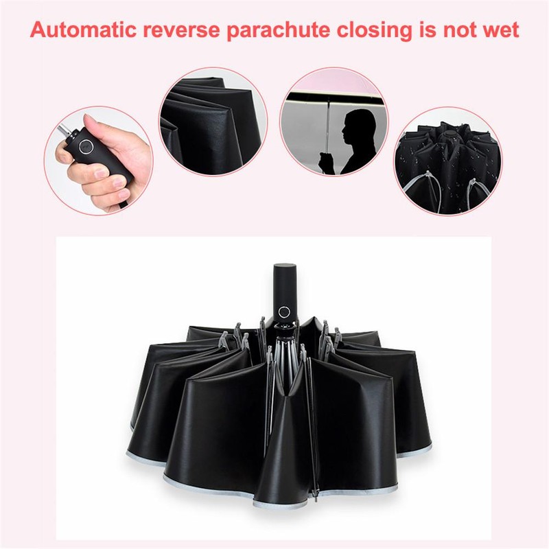 1 、 omgekeerde Opvouwbare Ontwerp: Met unieke omgekeerde opvouwbare ontwerp, deze paraplu voorkomen de water bevochtigen uw vloer en yoga matten wanneer sluiten het.2 、 Super Winddicht: De paraplu heeft krachtige waterdichte functie met 10 versterkte paraplu botten. Het is ook waterdicht.