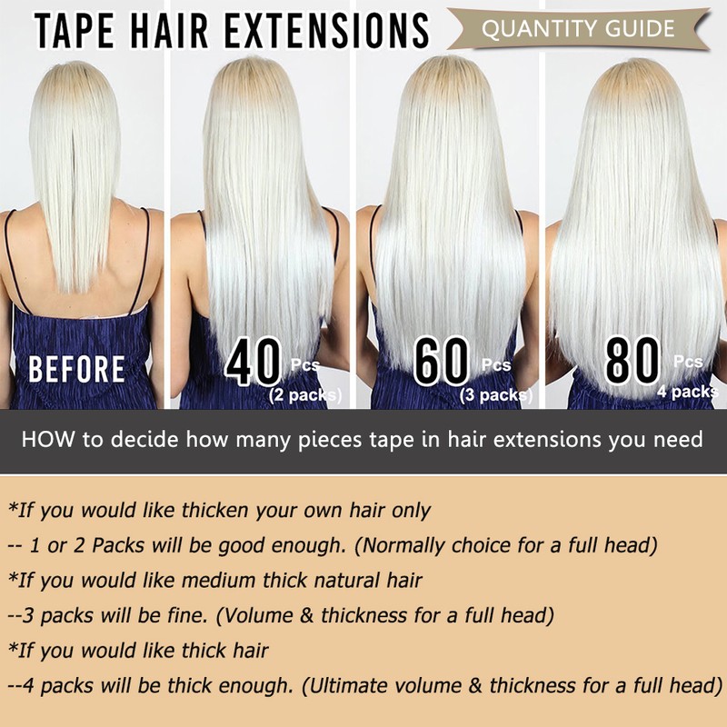 Andere beschrijvingen: Wij garanderen 100% menselijk haar. Hoge kwaliteit, zeer concurrerende prijs. Kleuren kunnen look beetje anders op elke monitoren. Tape haar is zeer eenvoudig aan te brengen en kan direct worden toegepast op parted gebieden van het hoofd. Het is eenvoudig, volledig onzichtbaar en geven alle natuurlijke uitstraling. Het lijkt alsof het haar groeit uit je eigen hoofdhuid Het haar is hand genaaid in een een duidelijke huid basis en dan, is bevestigd aan een duurzame dubbelzijdige onzichtbare tape. 40-60 stuks voor een volledige hoofd. U kunt kiezen lengte en kleur wat je wilde.