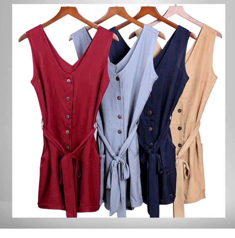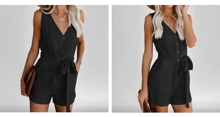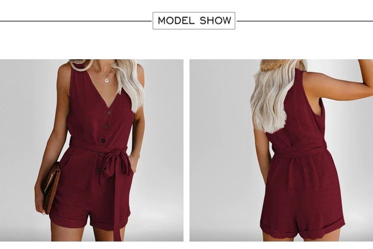 Vrouwen Zomer Kleding Off Shoulder Gordel Tuniek Sleeveles Playsuit Solid Casual V-Hals Korte Thuis Jumpsuit Laatste Dropshipping