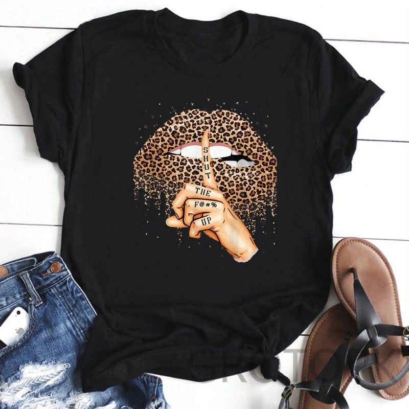 Zogankin Zomer Mode Shirt Lippen Luipaard Grafische T-Shirt Vrouwen Tops Base O-Neckblack Tees Kus Luipaard Lip Grappig Meisjes T-Shirt