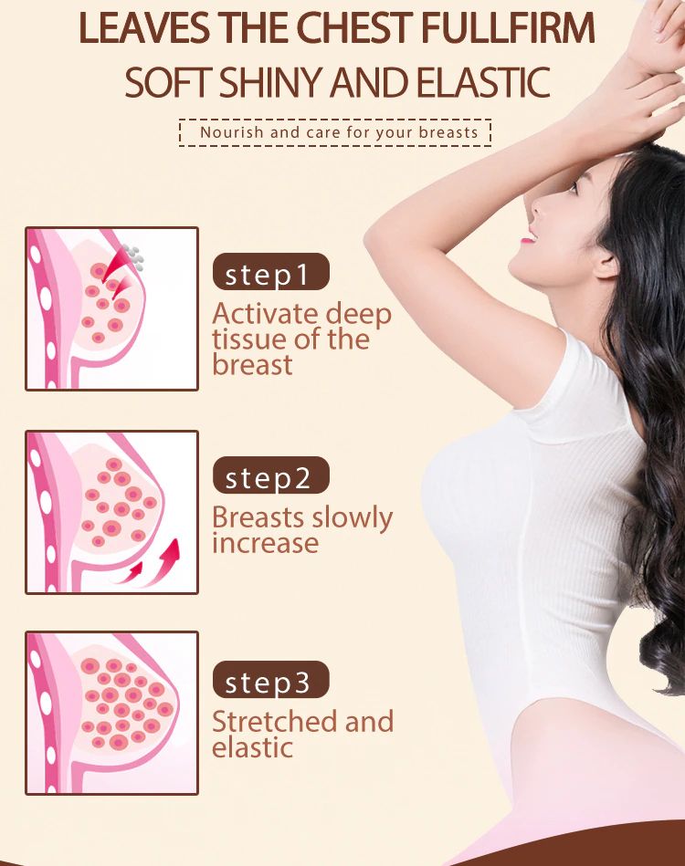 BRILLANT DOUX ET ÉLASTIQUE Nourrir et prendre soin de vos seins Étape 1: activer les tissus profonds du sein Étape 2: les seins augmentent lentement Ste p3: étiré et élastique