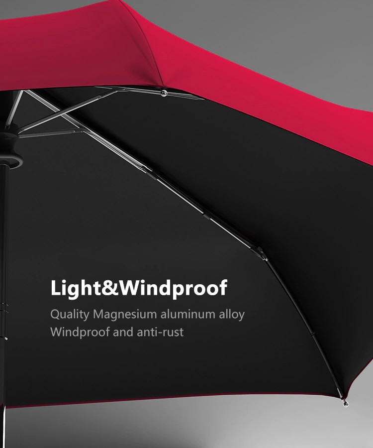 El esqueleto del paraguas está hecho de aleación de aluminio de magnesio de calidad, es un material ultraligero y flexible, resistente al viento y lo hace más ligero. El aluminio es resistente a la corrosión y al óxido. No te preocupes por que se rompa al viento.