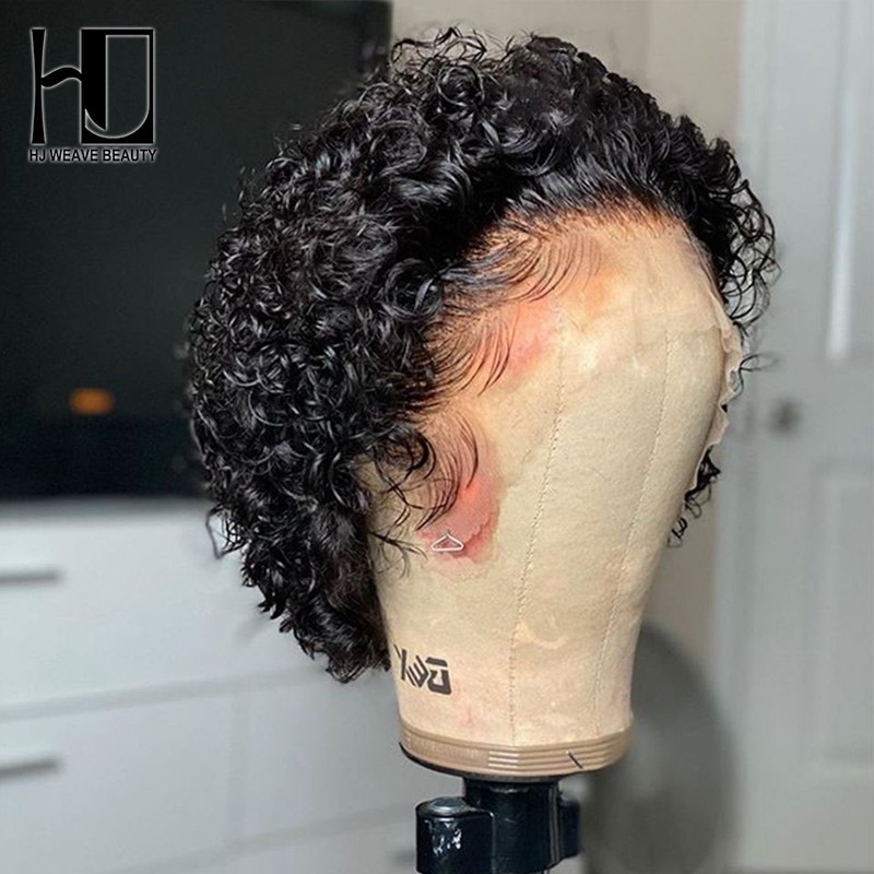 Pixie Cut Wig Short Bob Curly Lace Frontal Human Wig Transparent Front Lace For Women Deep Wave Cheap Human Wig