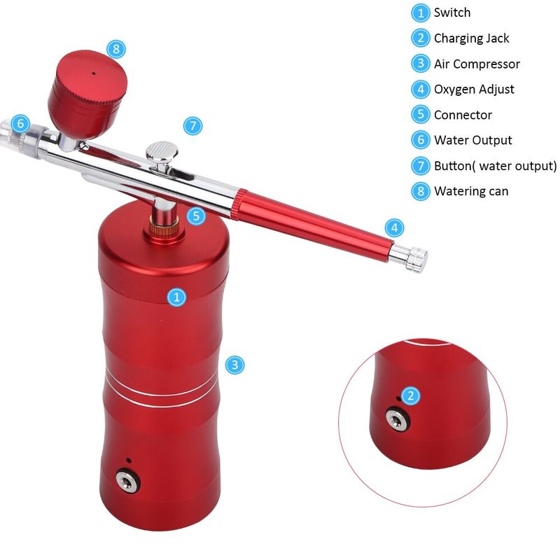 Aerógrafo Portátil Para Maquillaje, Compresor De Agua Facial, Pulverizador De Oxígeno Inyector Pintura Facial Rejuvenecimiento La Piel, Infusión De Oxígeno Inalámbrica