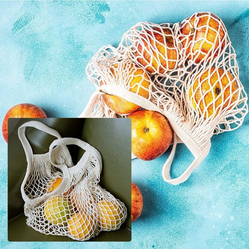 Bolsas De La Compra Reutilizables, Red De Algodón Para Frutas Y Verduras, Malla Grande, Bolso De Mano Portátil Con Asas Cortas