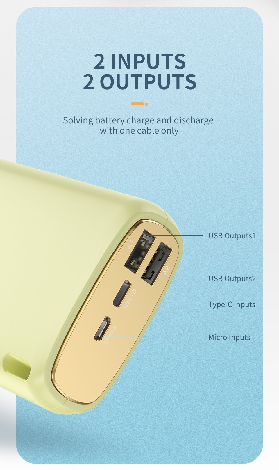 Micro input: 5V/2.0A Type-C input: 5V/2.0A