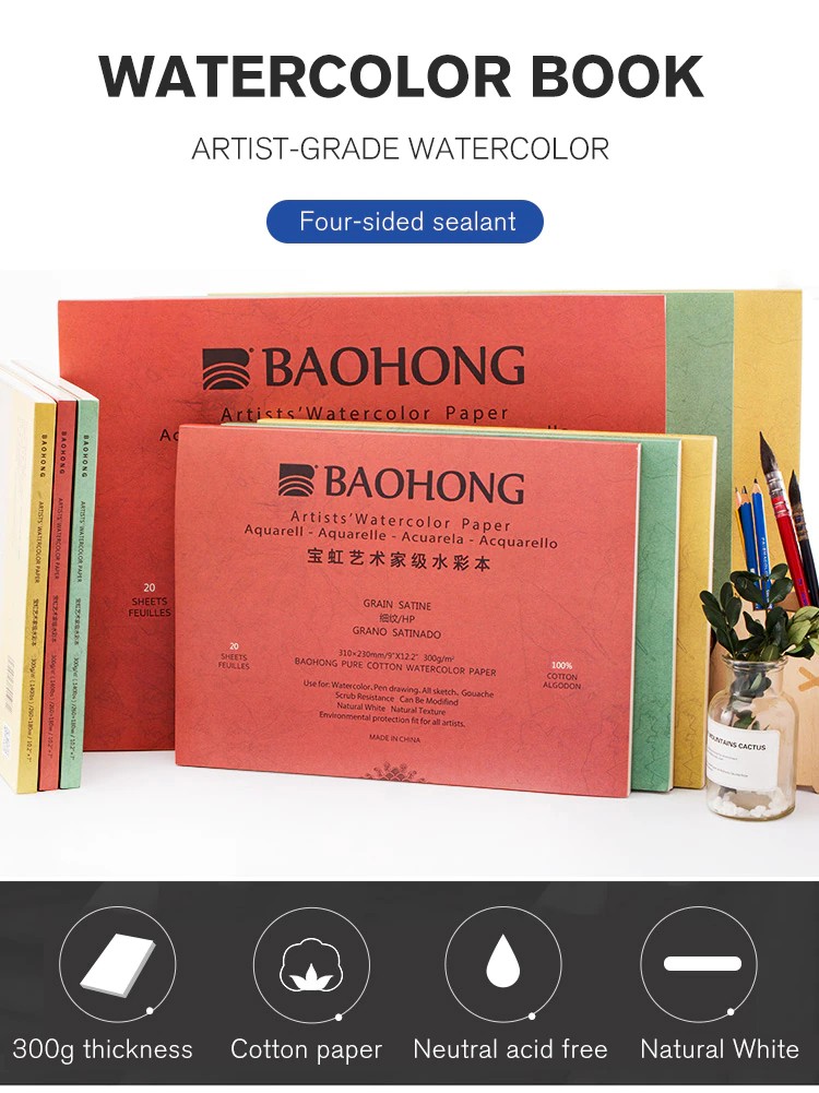 Papel Aquarela Profissional Portátil 300 Algodão, Artigos De Papelaria Para Desenho E Viagem, 100% G