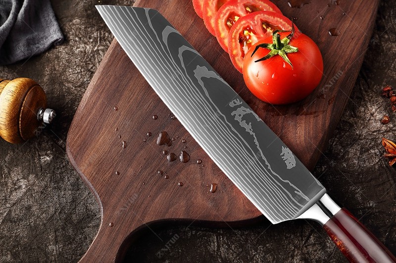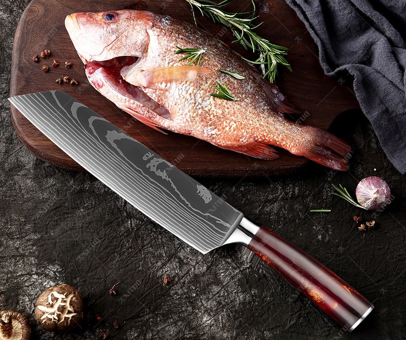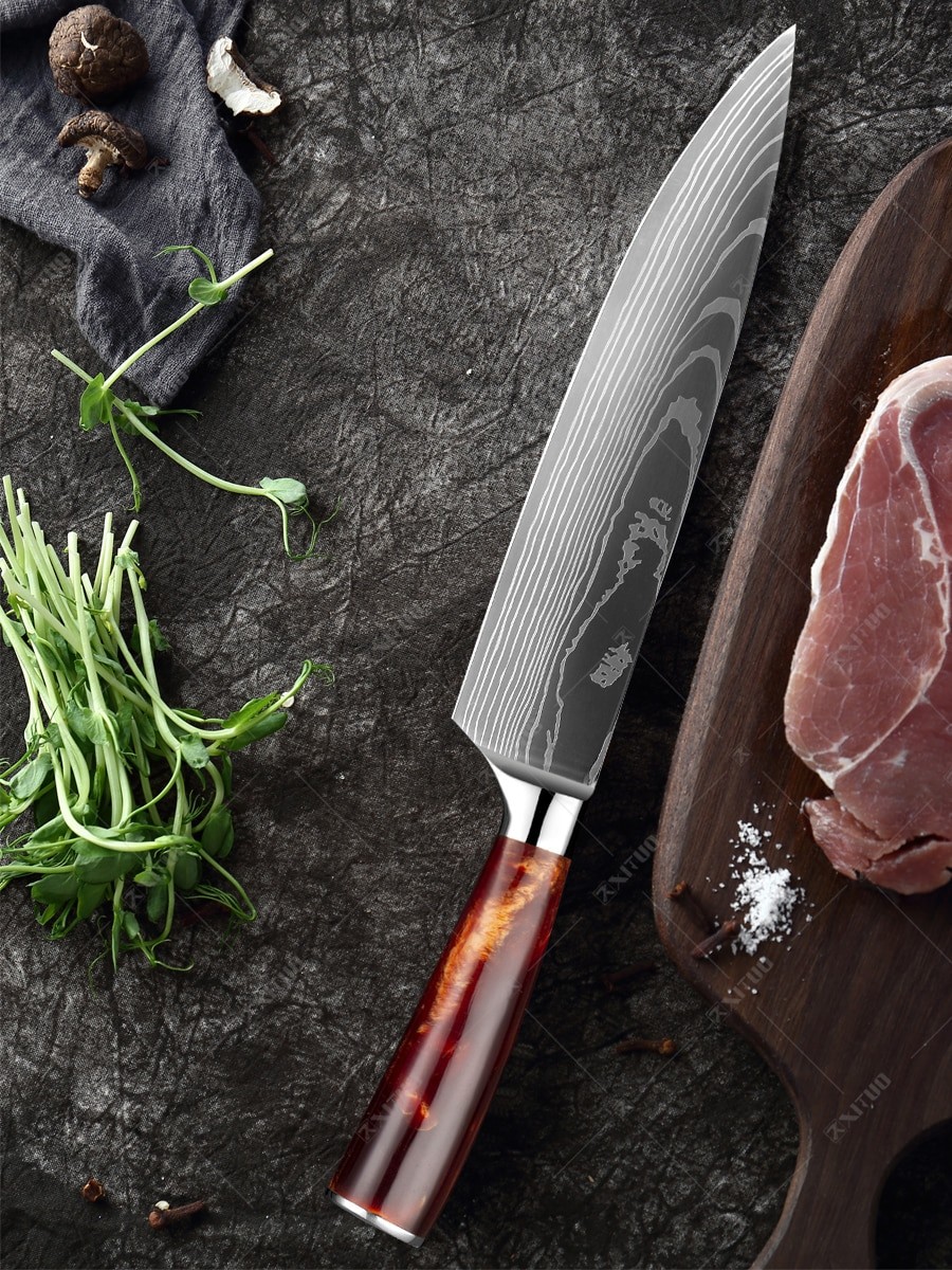 Xituo 1-10 Pçs Conjunto De Facas De Cozinha Padrão Damasco Laser Faca Do Chef Afiada Santoku Cutelo Facas Utilitárias Corte Resina Punho