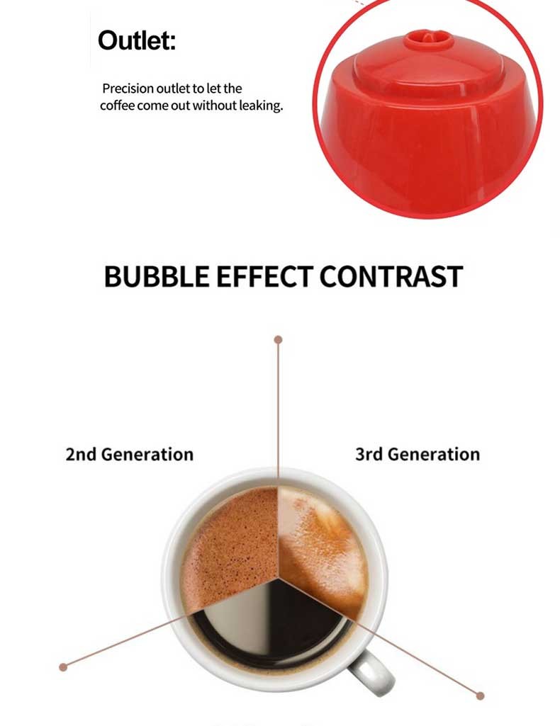 4.Use finished,please remove the steel capsule,clean and spare.Note:before use it,make sure the steel capsule clean,the holes in the lid,no coffee power on the joint.it is important to experiment with correct amount of coffee about 6 to 7g(5g/spoon)and also pay attention to grind which can neither be too coarse nor too fine.please try a few times to find the correct one.you will be surprised how good and creamy the coffee is.