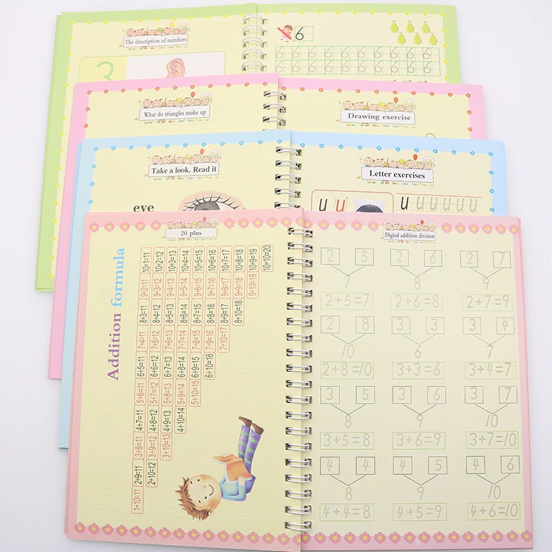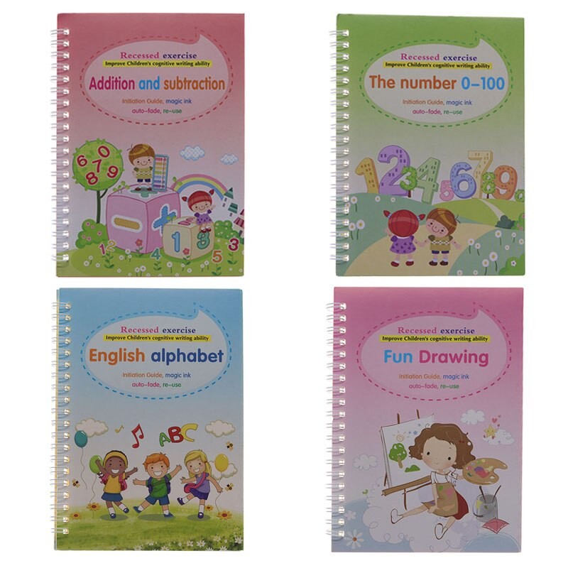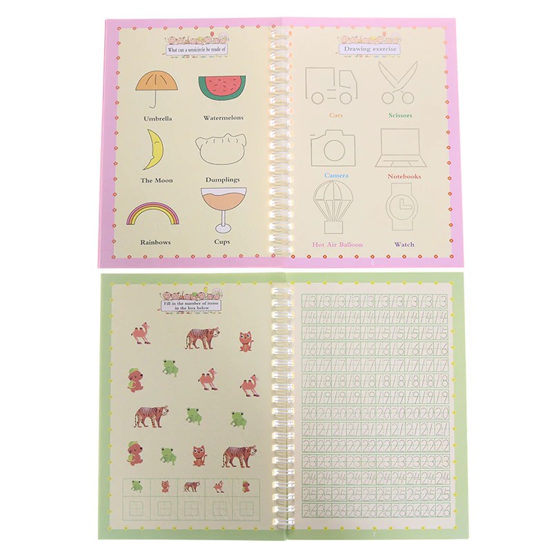 (1 Conjunto/4 Livros E Caneta) Magia Livro De Trabalho Crianças Brinquedos De Escrita Com Adesivos Montessori Caligrafia Brinquedos Inglês Notebook