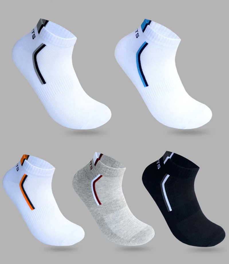 10 Peças = 5 Pares/Lote Meias Masculinas Malha Respirável Curto Casual Meias De Algodão Verão Esportes Absorvem Suor Tornozelo Conjunto Meias