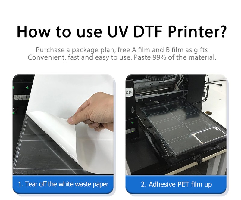 A impressora uv dtf é uma impressora plana com lâmpadas uv, referida como impressora uv. Imprime em um filme de pet auto-adesivo (um filme), e depois usa uma máquina de estratificação para transferir o padrão para o filme b, e depois colá-lo no objeto. Um novo método de adesivo de transferência, muito conveniente e rápido.