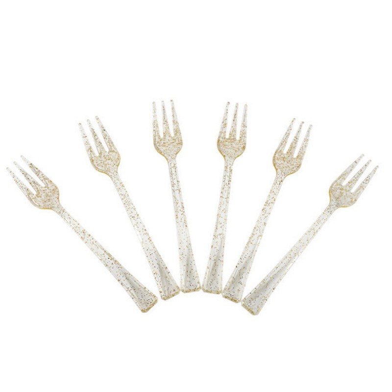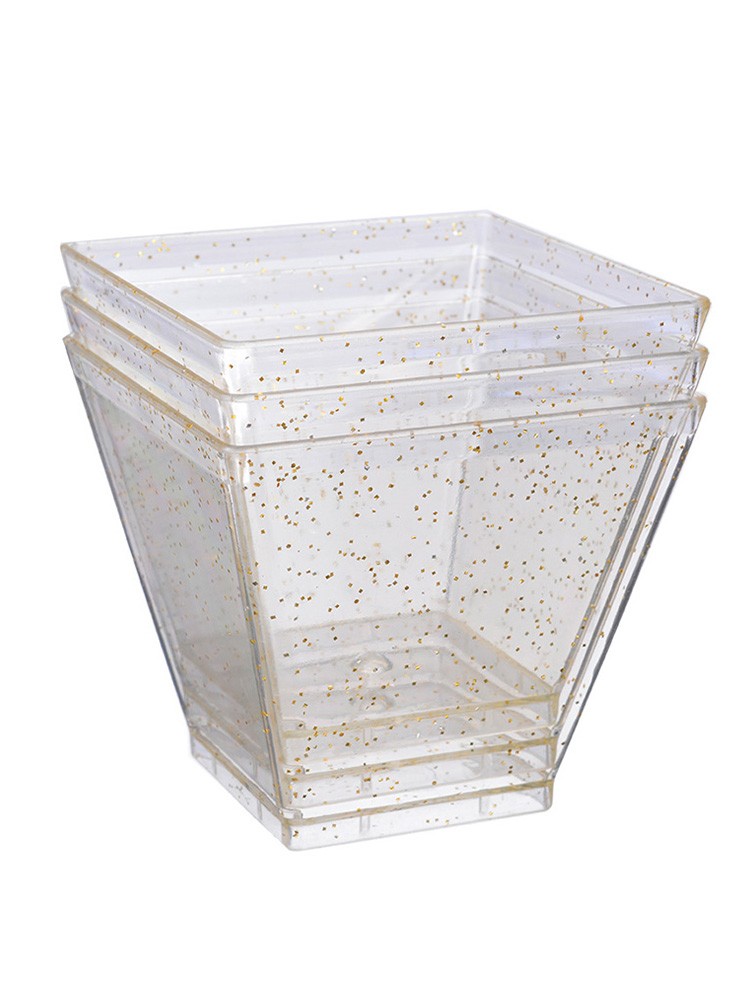 10 Pçs Descartável Plástico Duro Transparente Ouro Em Pó Mousses Sobremesa Aperitivos Copo Colheres Tampas Festa De Casamento Suporte De Comida