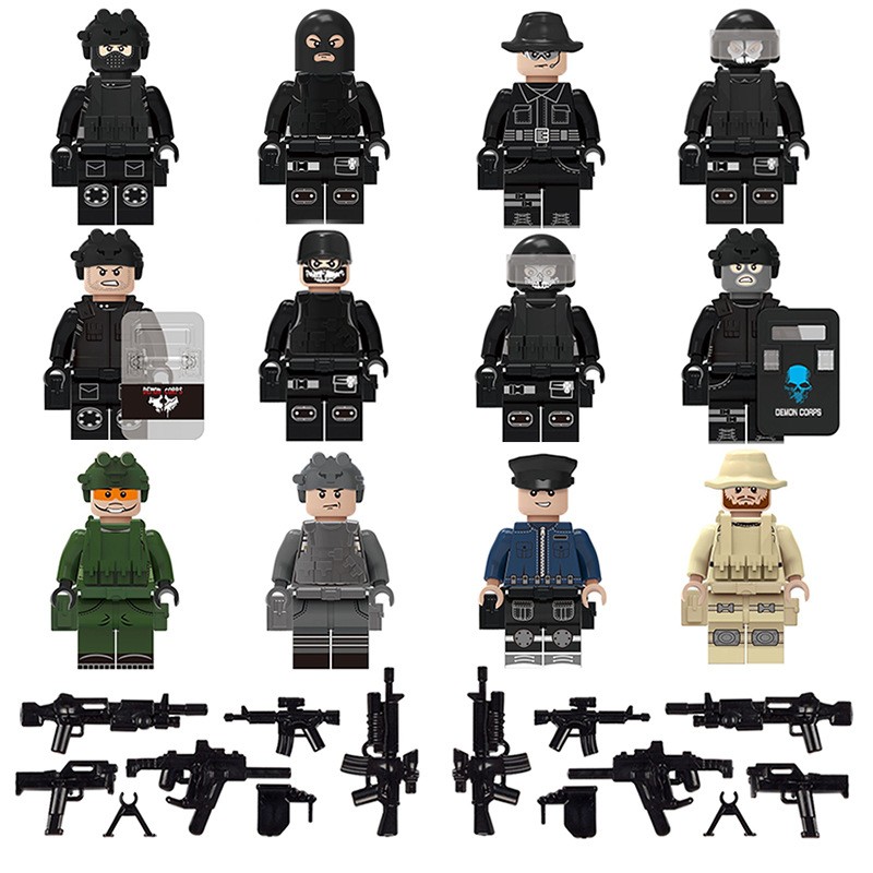 12Pçs Saco 1620 Cidade Arma De Boneca Preta Militar, Miniaturas De Polícia Militar, Acessórios Bloco Construção Crianças, Brinquedo De Presente
