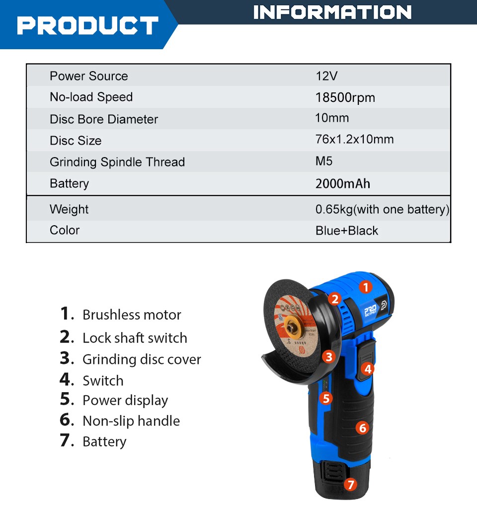 12V Mini Brushless Ângulo Moedor De Polimento Sem Fio Máquina Moagem 2000Mah 18500Rpm Ferramentas Elétricas Para Casa Prostormer