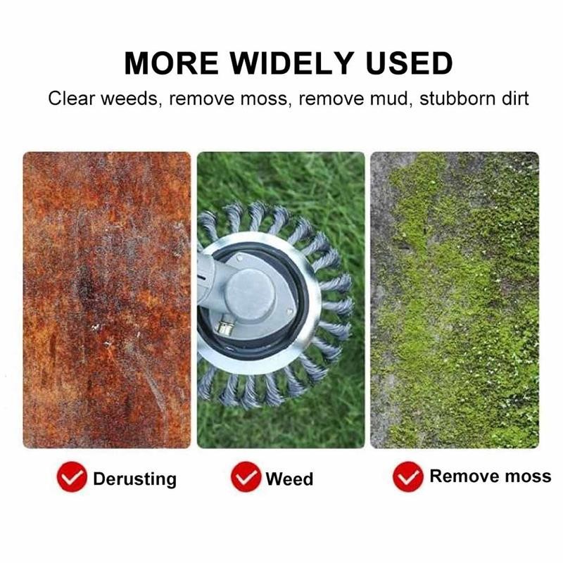 Com fios de aço torcidos em vez de lâminas, esta cabeça do aparador pode eficientemente remover todo o musgo e ervas daninhas desarrumadas em seu gramado, jardim, passarelas; especialmente aplicável à estrada de tijolos, pedra de pavimentação, juntas do pavimento.