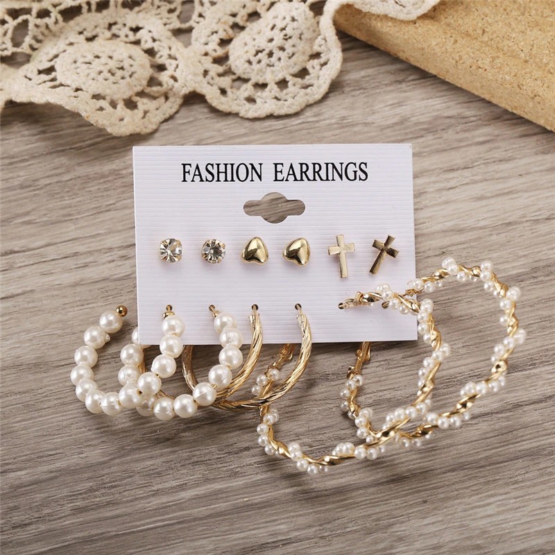 17Km Geométrico Do Vintage Brincos De Metal Ouro Conjunto Para As Mulheres Punk Pérola Balançar Brincos De Gota O mais novo Tendência Conjunto De Brincos Jóias