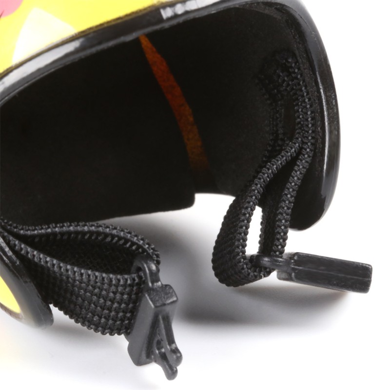 Feito de plásticos, elástico, o capacete é seguro e confortável.
