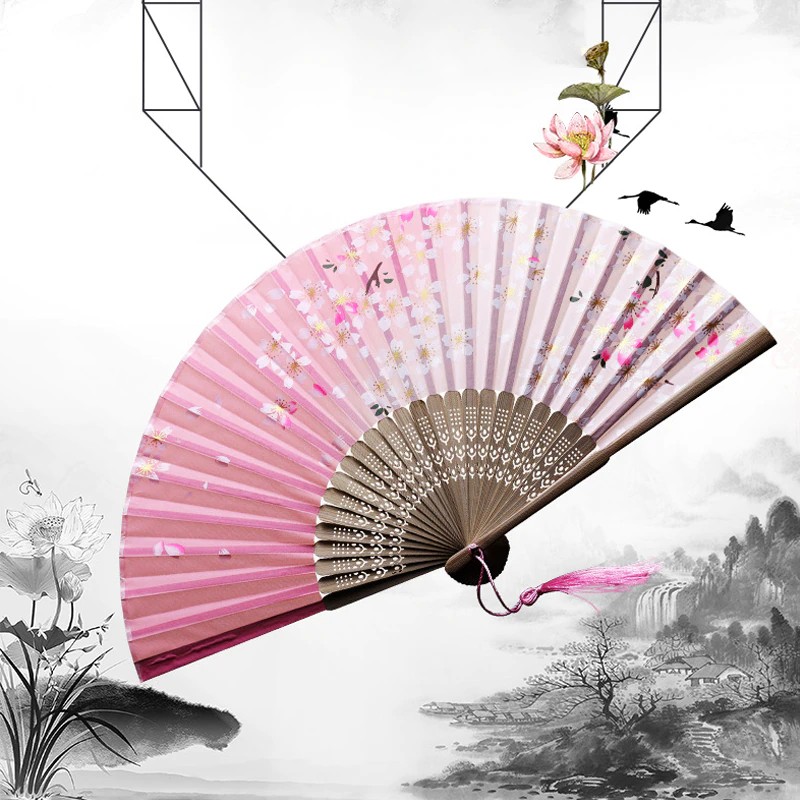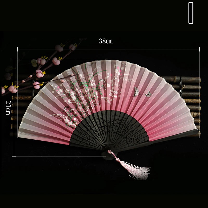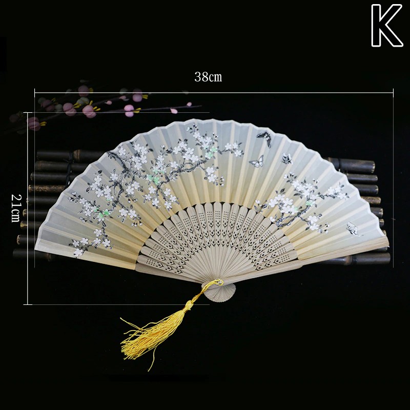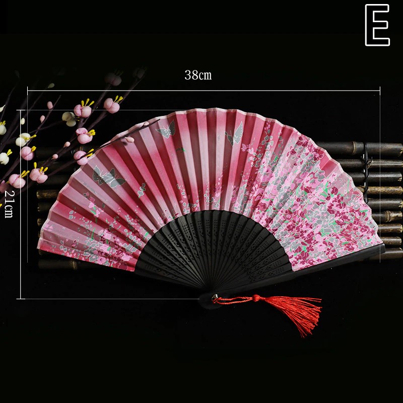 1Pc Ventilador De Dobramento De Seda Do Vintage Retro Chinês Japonês Bambu Dobrável Fã Borla Dança Mão Fã Decoração Para Casa Ornamento Artesanato Presente