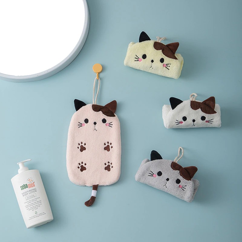 1 Unidade Super Absorvente Tipo De Pendurar Toalha De Mão Bordada Para Gato Decoração Da Casa Dupla Veludo Coral Produtos De Banheiro