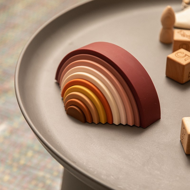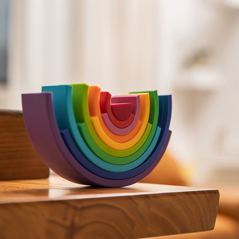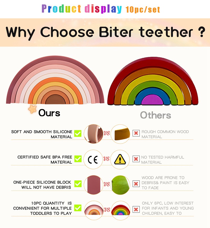 Nome do produto: 1 conjunto bebê arco-íris silicone empilhamento brinquedo