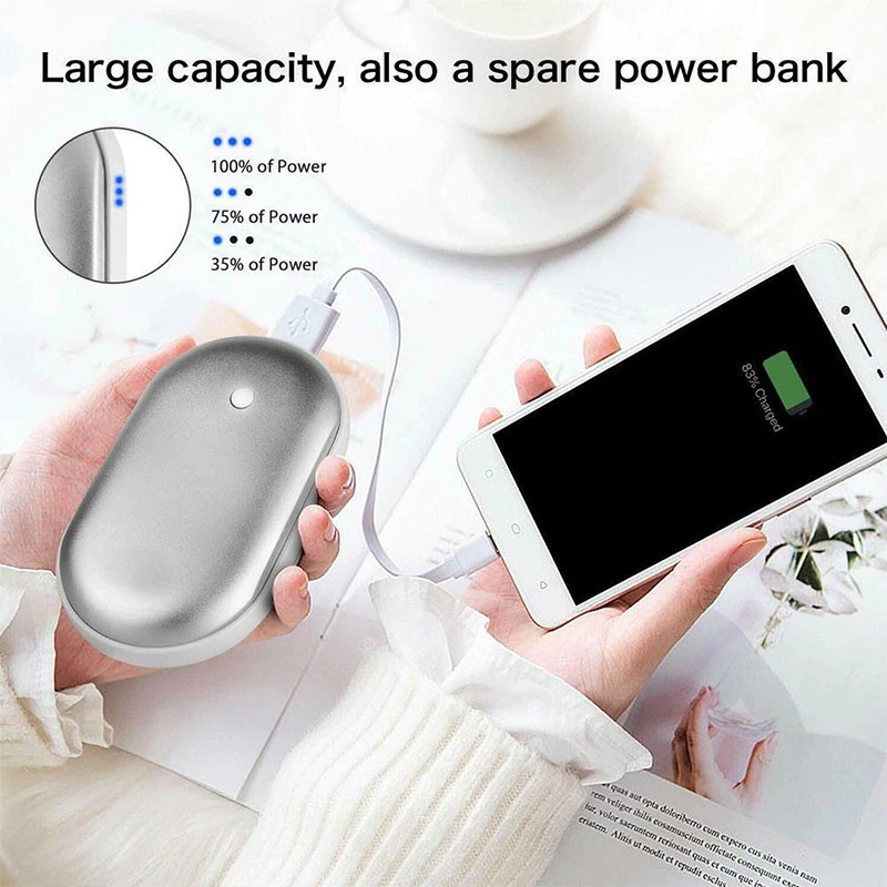 * 3. 2-em-1 aquecedor de mão, também pode ser usado como um banco de potência para carregar seu telefone celular, pode ser levado em uma mão, ou em um bolso, pode ser usado para aquecer mãos, pés, joelhos, barriga. Você pode carregá-lo com você durante esportes, pesca, caminhadas, acampamento, esqui, viagens ou esportes ao ar livre.