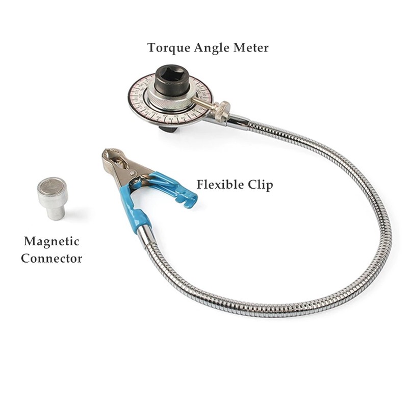 2 Em 1 Medidor De Ângulo De Torque 1/2 &Quot;Cr-V Calibre Ângulo Chave Acionamento Aço Com 14&Quot; Braço Grampo Flexível E Conector Magnético Fácil De Ler