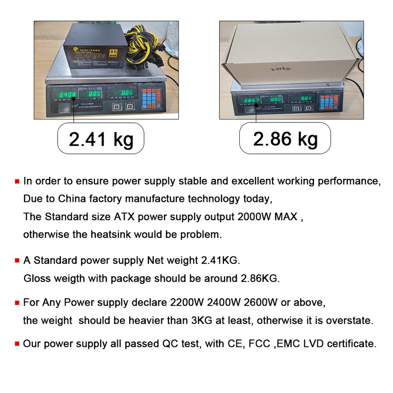 Para qualquer fonte de alimentação declarar 2200w 2400w 2600w ou acima, o peso deve ser mais pesado do que3KGPelo menos, caso contrário é excesso de estado.
