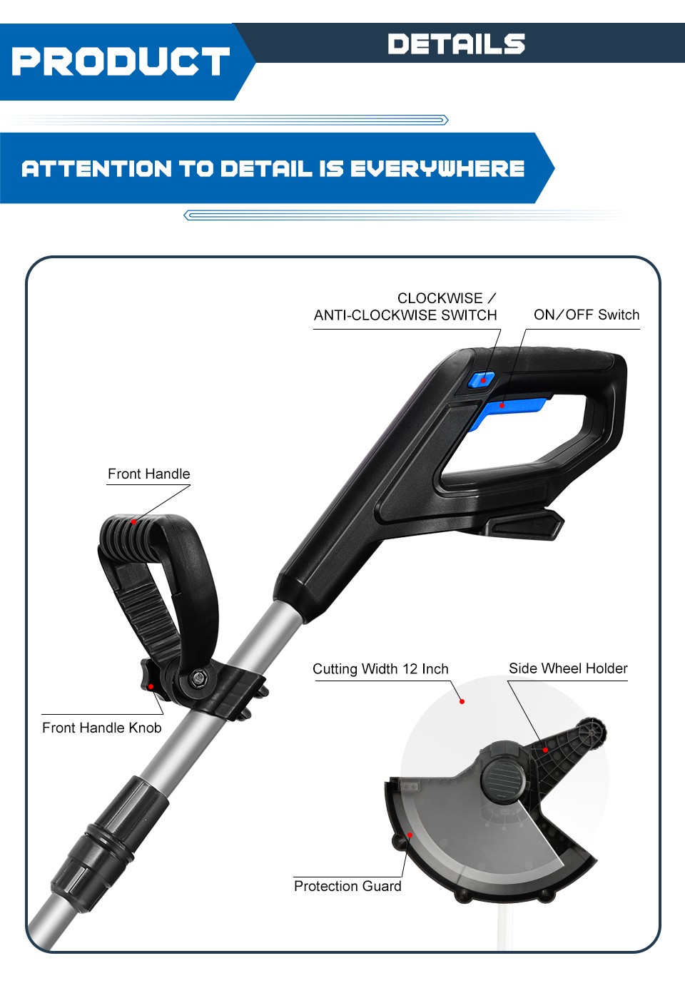 20V Elétrica Cortador De Grama Li-Ion Bateria Sem Fio Aparador De Grama 12In Liberação Automática Cortador Corda Poda Ferramentas De Jardim Por Prostormer