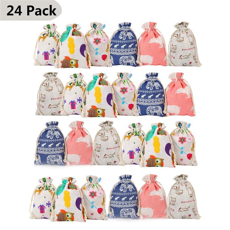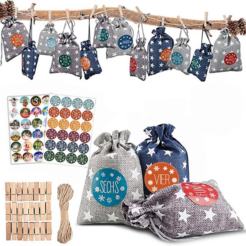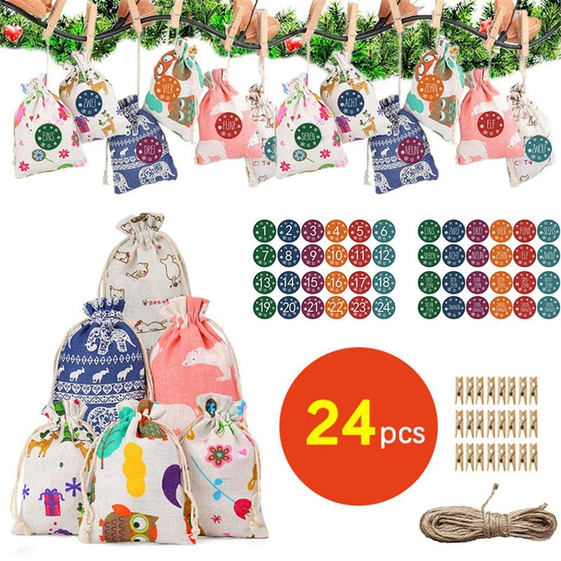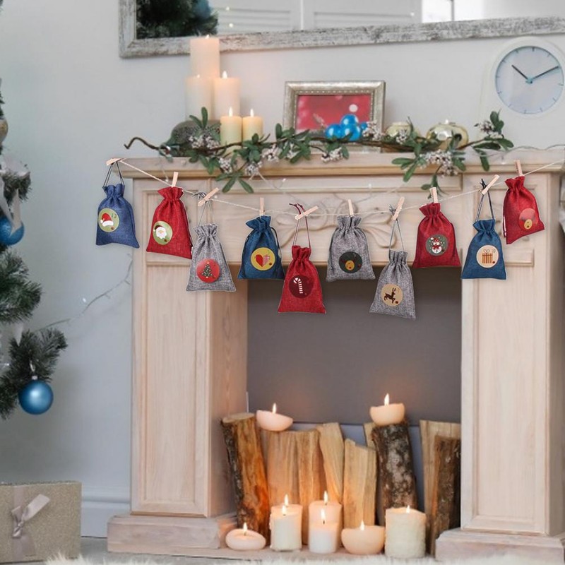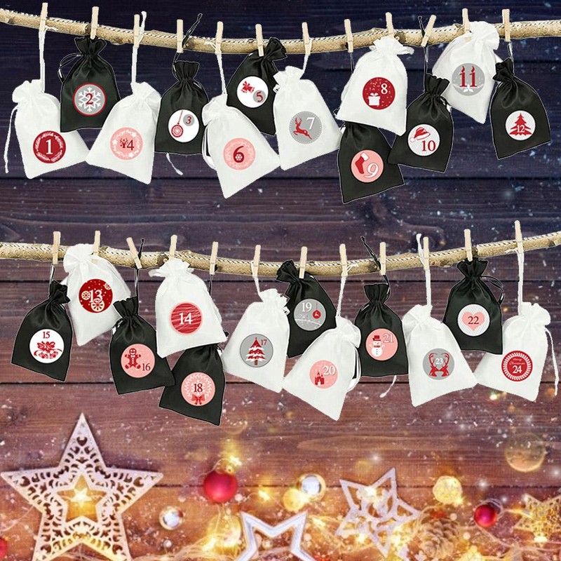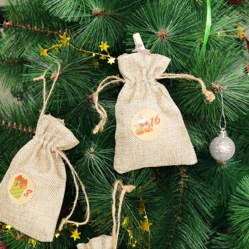 24 Dias Natal Advento Calendário Bagsadvent Calendário Sacos De Presente Diy Conjunto De Papel Adesivos Diy Enfeites De Natal Com Clipes