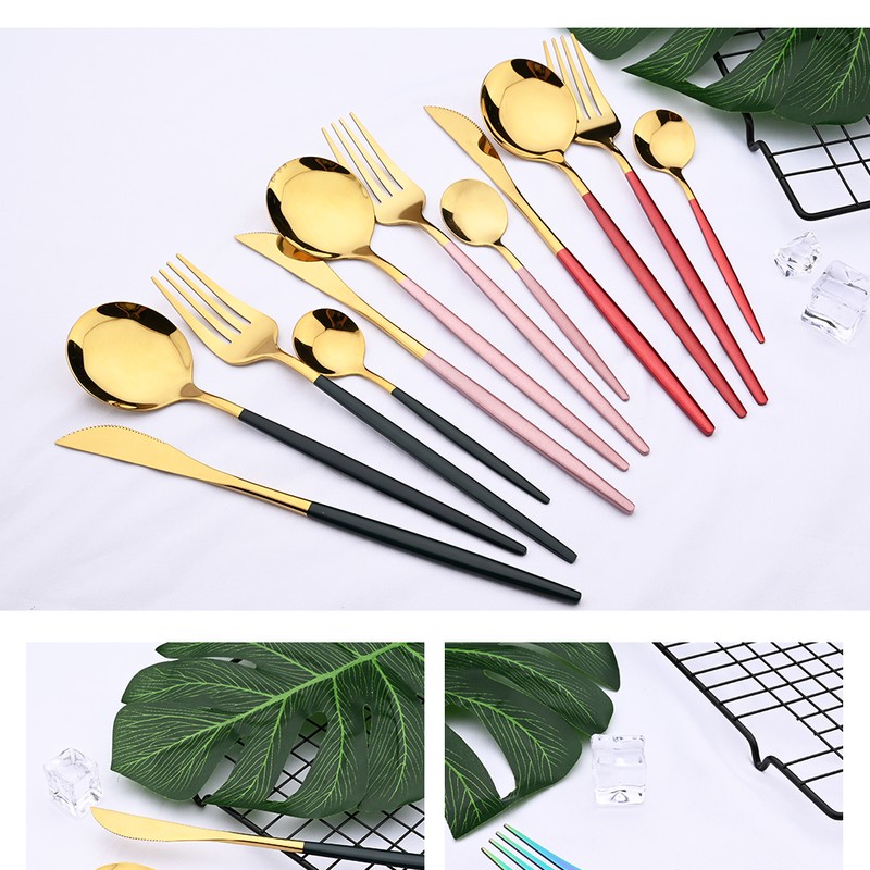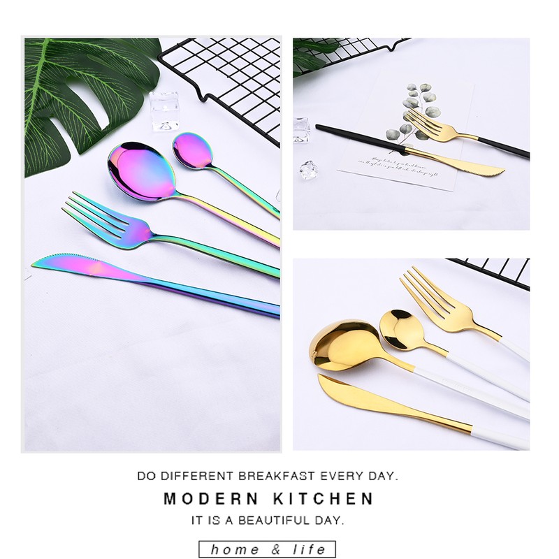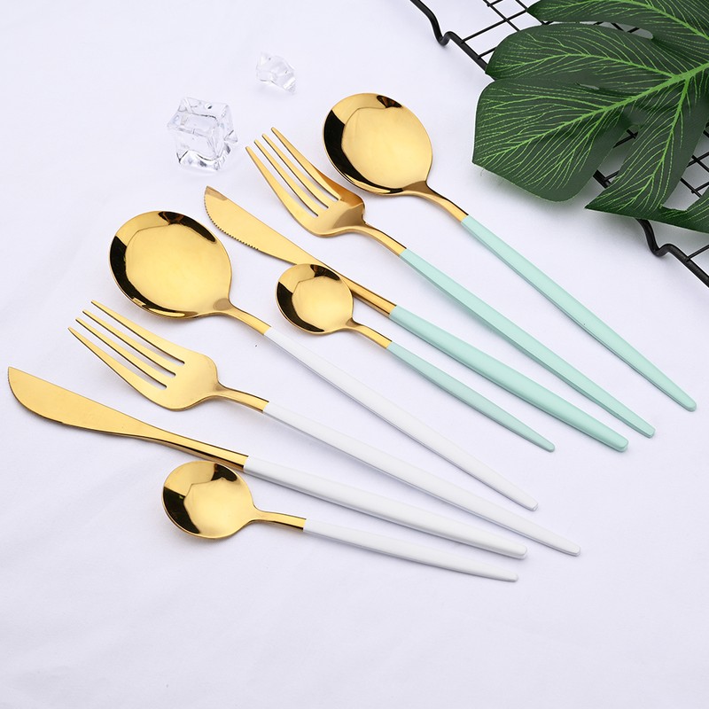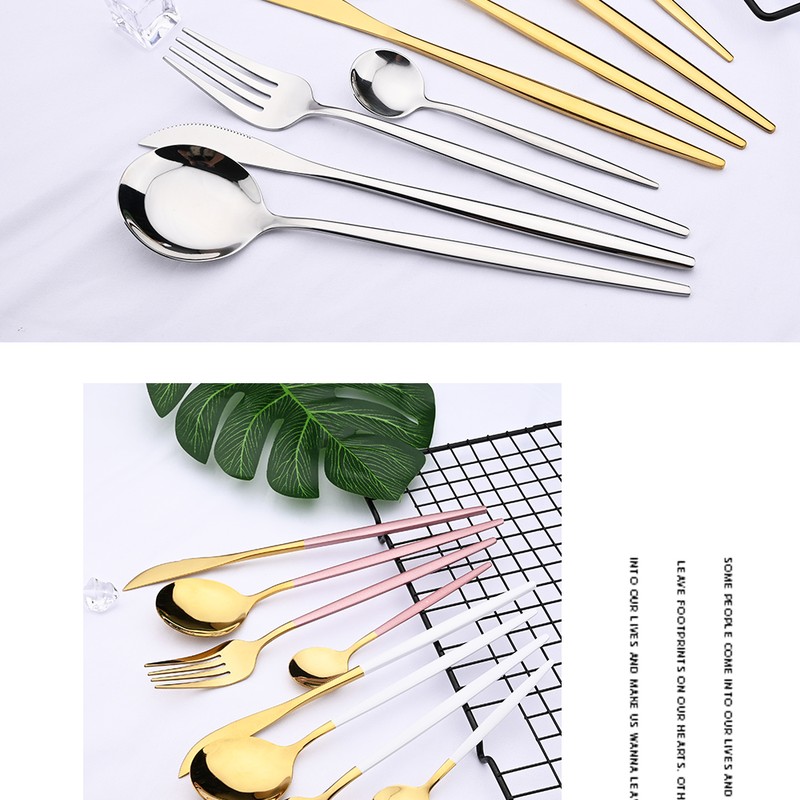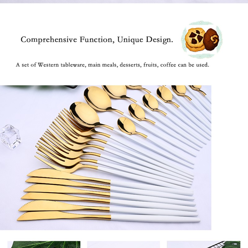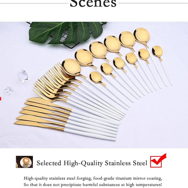 24 Pçs Ouro Branco Conjunto De Louça Faca Garfo Colher Talheres De Aço Inoxidável Conjunto Talheres De Cozinha Conjunto Talheres Atacado