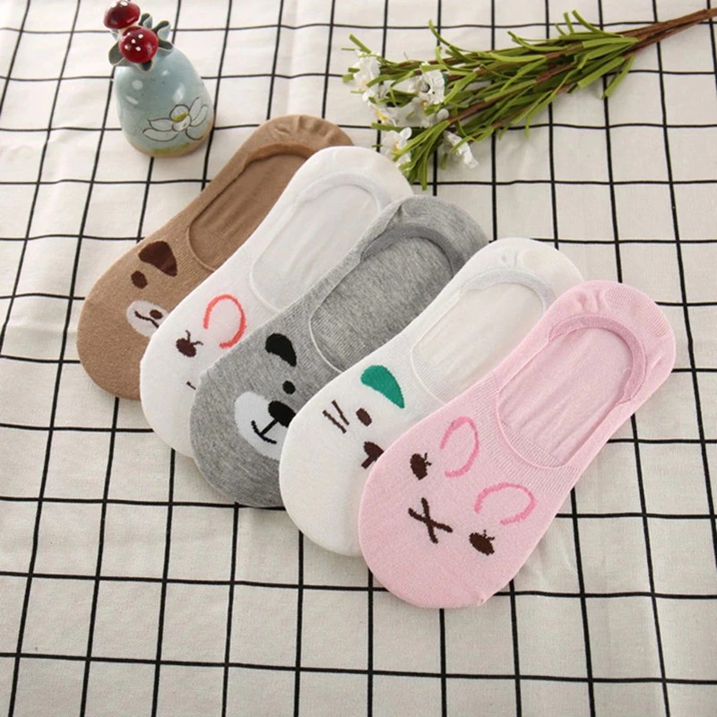 27 Estilos 10 Peça = 5 Pares/Lote Bonito Harajuku Animal Feminino Meias Conjunto Engraçado Primavera Gato Cão Coelho Panda Baixo Corte Curto Meia Feliz