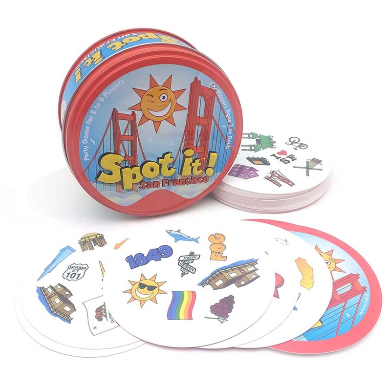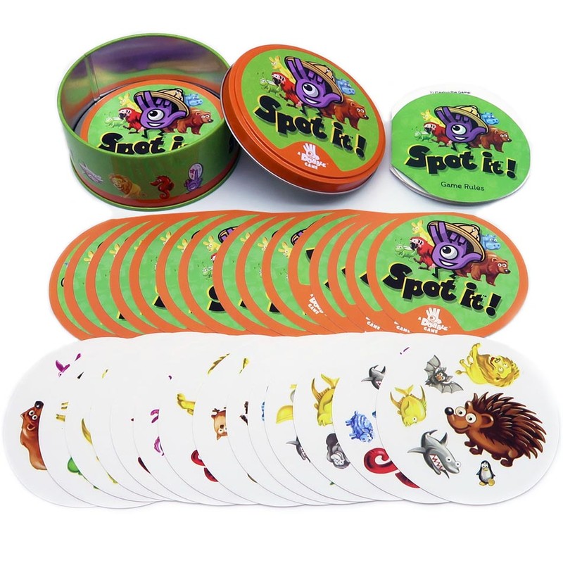 27 Estilos Dobble Jogo De Tabuleiro De Mesa Para Dobbles Crianças Cartões Ir Acampamento Metal Lata Caixa Shalom Básico Inglês Brinquedos