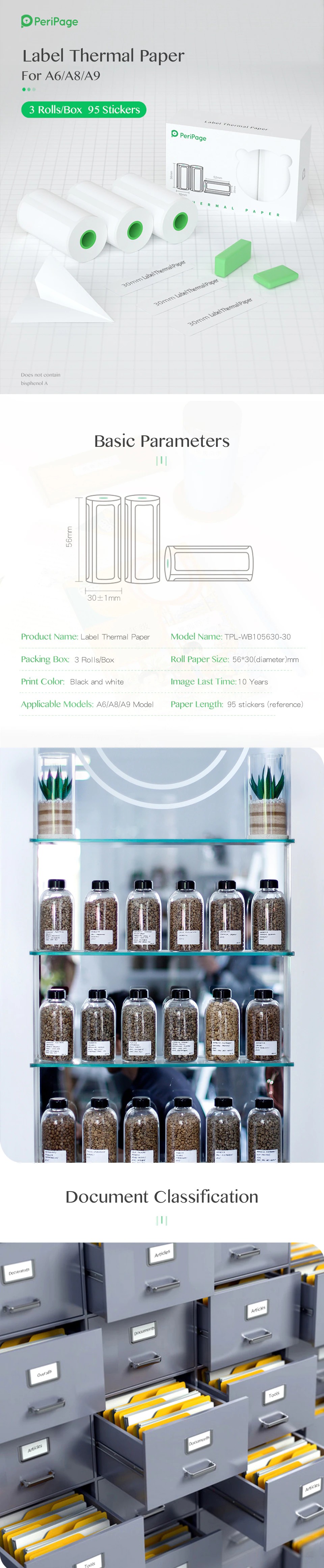 3-12 Rolo De Papel Para Impressão Térmica, Rolo De Papel Térmico Direto 57*30Mm Para Peripage A6 Impressora Térmica Paperang P1/P2