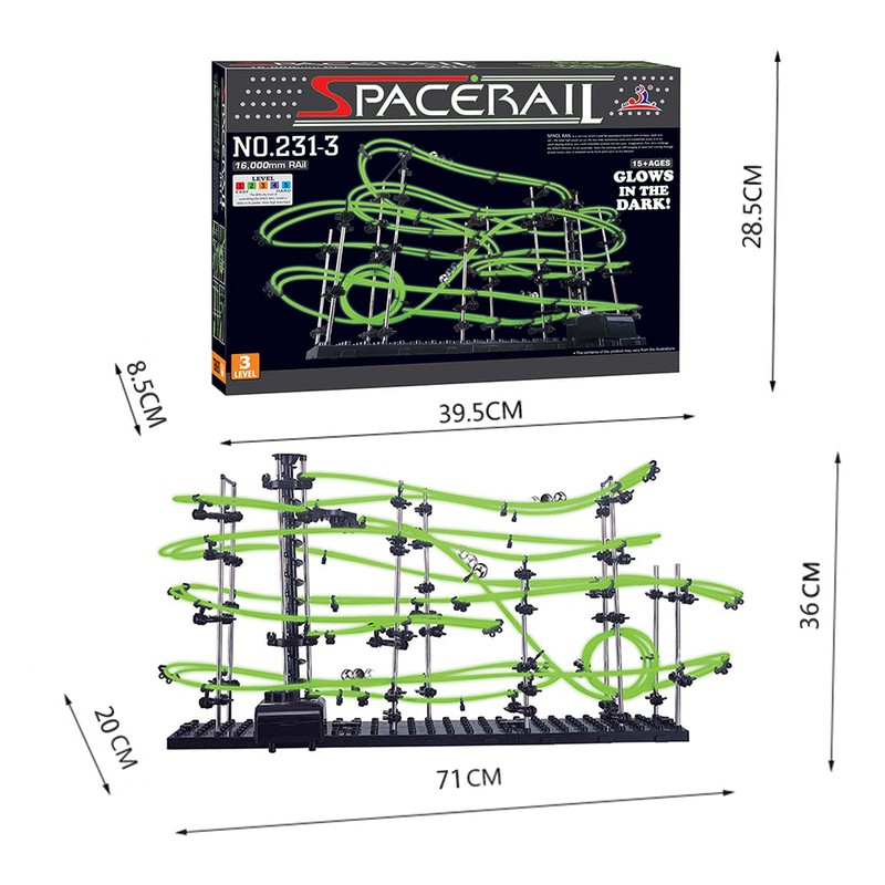 O trilho espacial também é chamado de spacewarp ou montanha-russa. É um um modelo brinquedos de construção como blocos, ou chamado de brinquedos do-it-yourself (diy). Todas as partes dos brinquedos são separadas originalmente. Você tem que descobrir, separou-os e combiná-los no modelo.