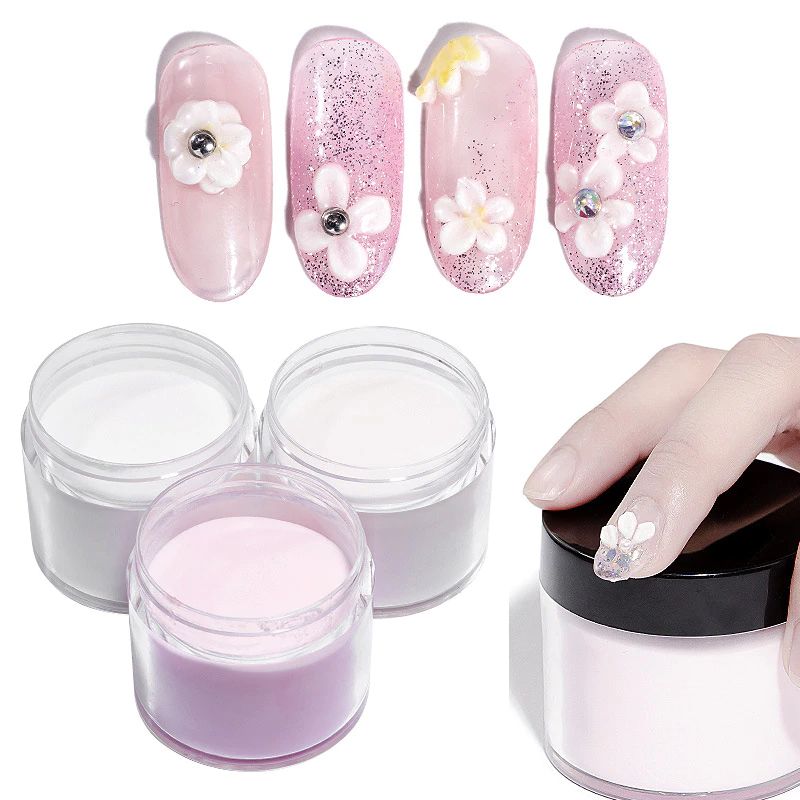 Pó Acrílico Para Unhas Artísticas, Pó Para Unhas De Polímero, 3 Cores 1 Peça Rosa Branco Transparente Profissional, Unhas Acrílicas Líquidas