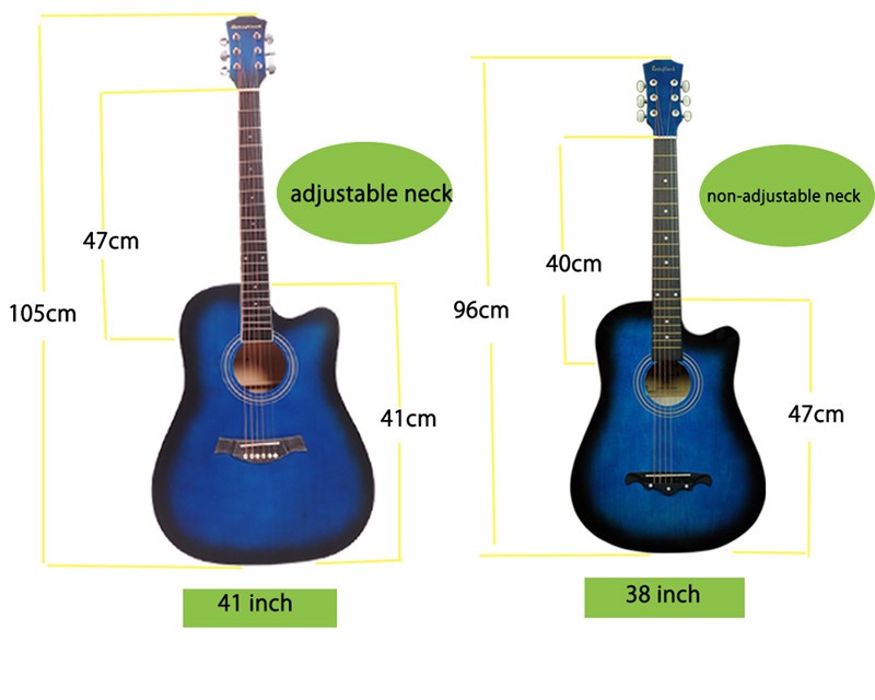 Esta guitarra acústica vem em tamanho de 38/41 polegadas, adequado para amante da música, estudante e iniciante.