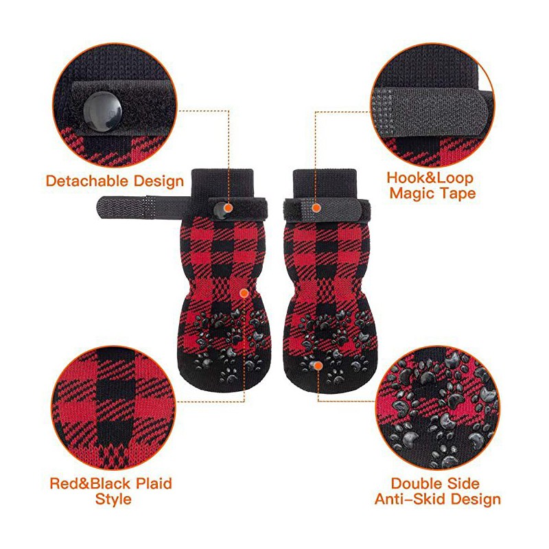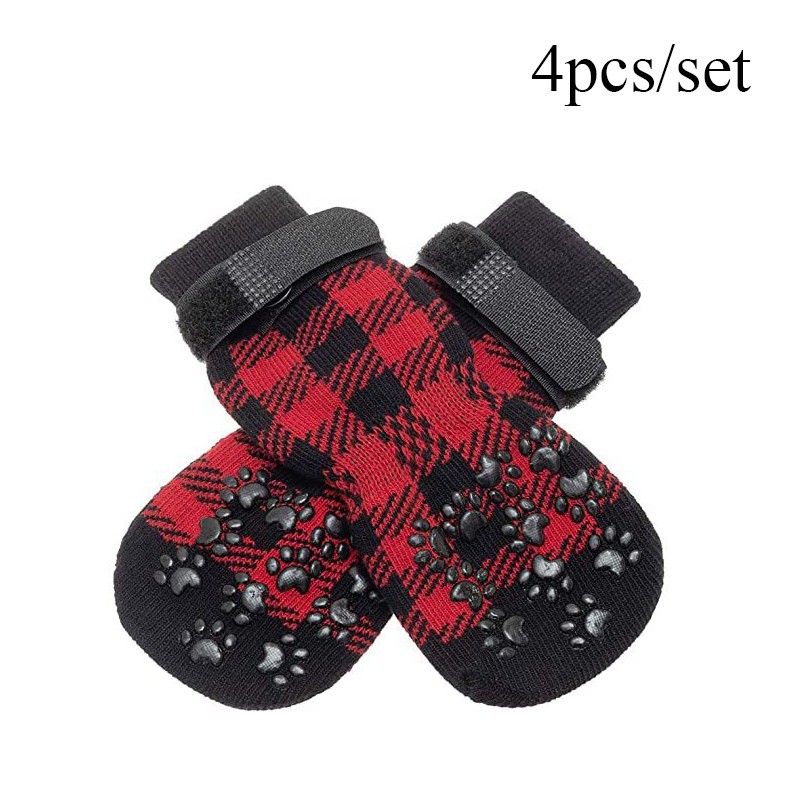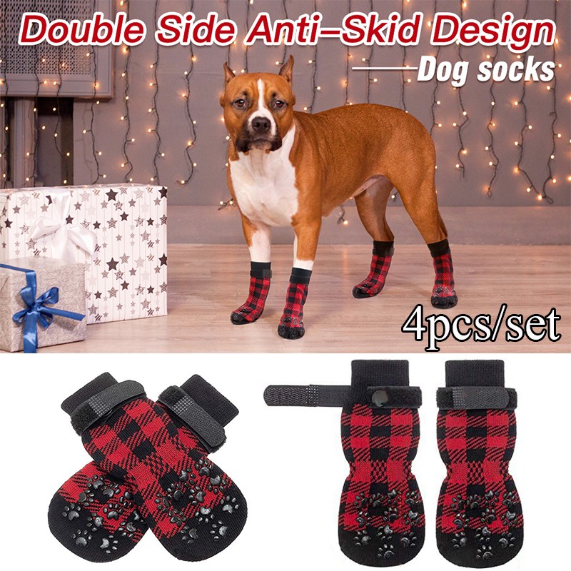 4 Pçs Natal Bonito Xadrez Quente Filhote De Cachorro Cachorro Meias Meias De Malhas Pet Anti Deslizamento Meias Filhote Cachorro Sapatos Pequenos Cães Médios Produto Para Animais De Estimação