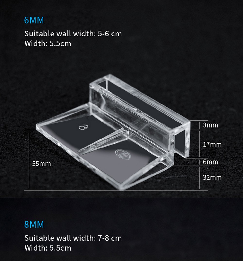 Pacote Incluindo 4 pces x suporte de cobertura de vidro de aquário Material: Acrílico Cor: Clear Tamanho s: largura: 5cm, largura adequada da parede: 5-6 cm Tamanho m: largura: 5cm, largura adequada da parede: 7-8 cm Tamanho l: largura: 5cm, largura adequada da parede: 9-10 cm Tamanho xl: largura: 5cm, largura adequada da parede: 10-12 cm