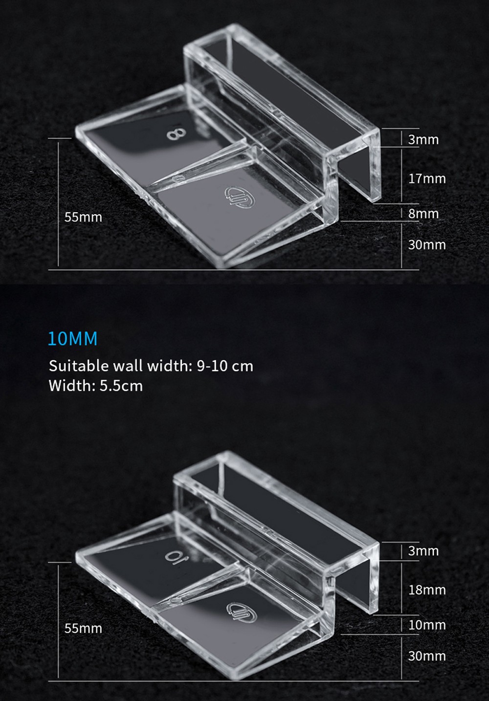 Pensa da parede de vidro adequada: 6cm, 8cm, 10cm, 12cm