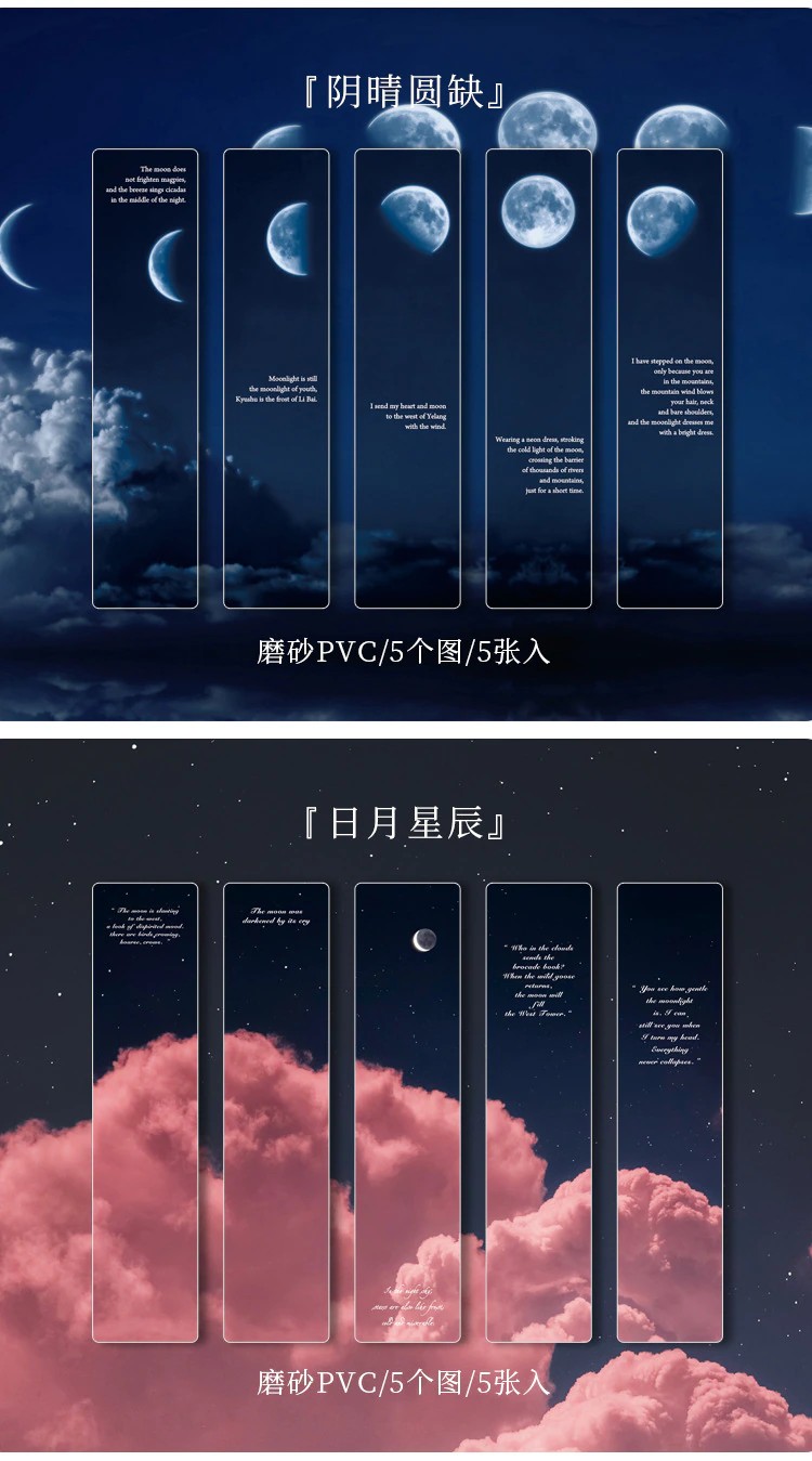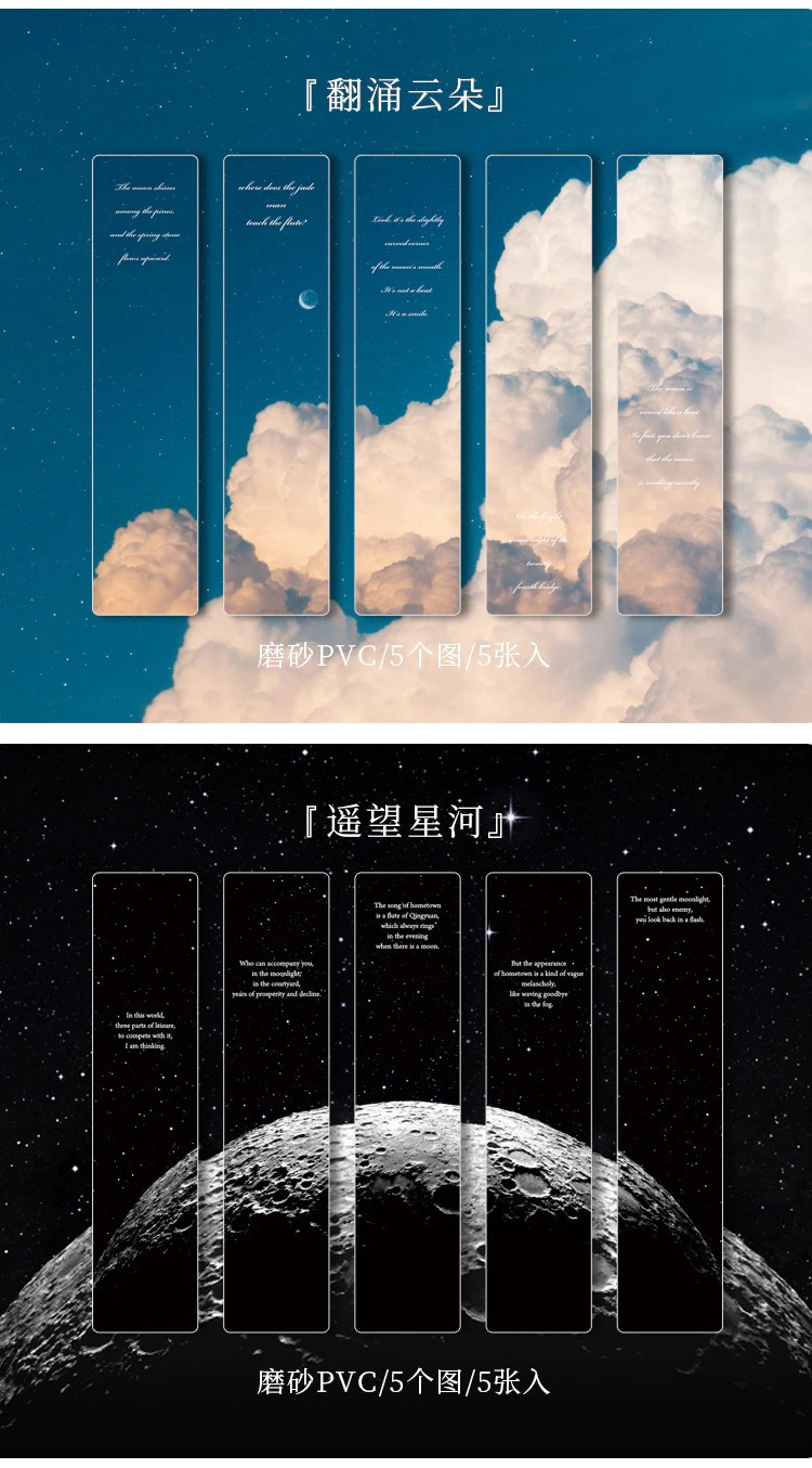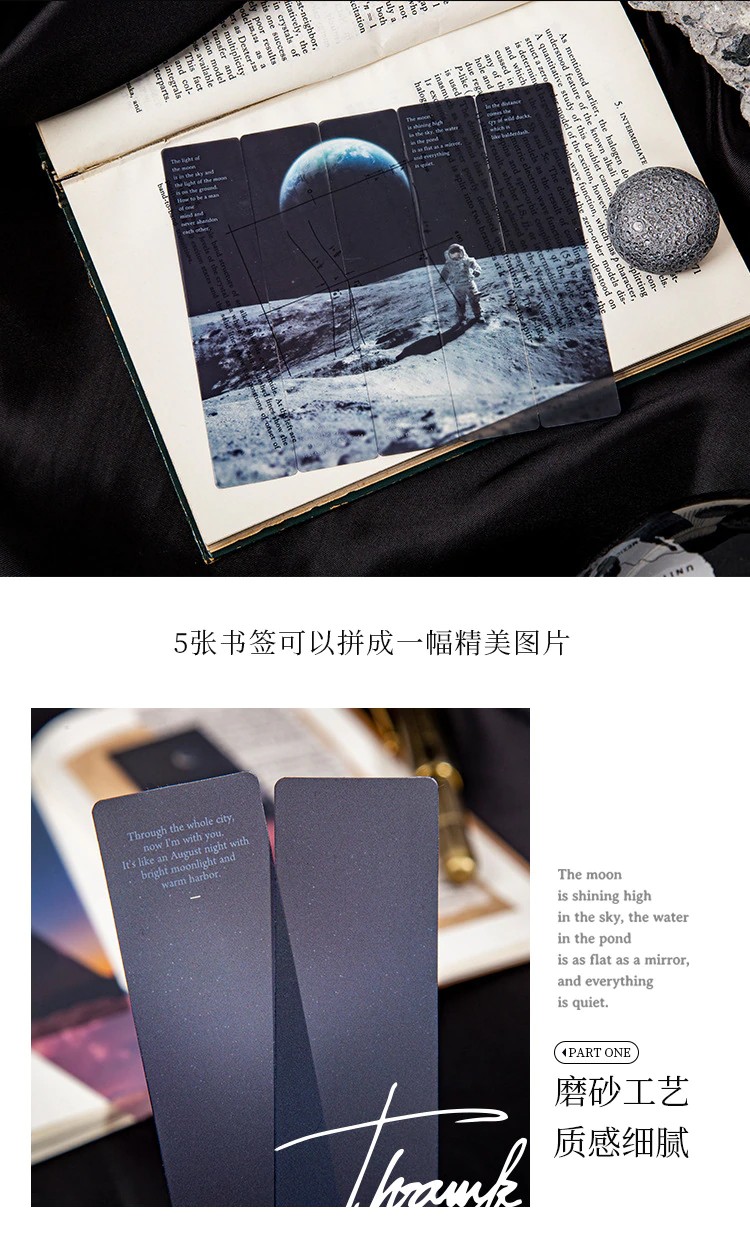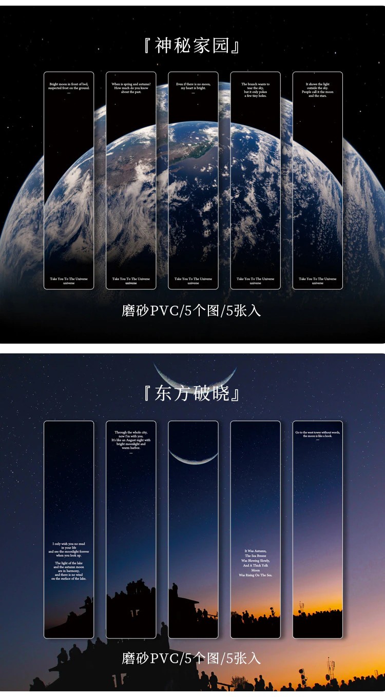 5 Unidades/Pacote Espaço Série Tour Bookmark Pvc Leitura Livro Marca Anoitecer Lua Livro Página Marcador Artigos De Papelaria Suprimentos
