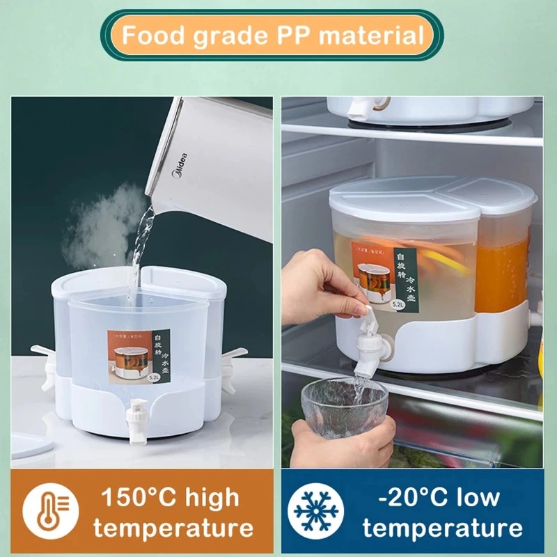 5200Ml Jarro De Água Fria Casa Pode Girar Com Torneira Frutas Bule Chaleira Balde De Água Fria Cozinha Drinkware Chaleira Pote