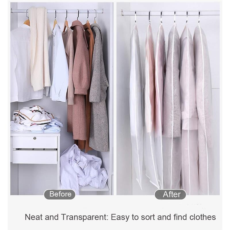 Capa de revestimento com dois tamanhos, adequado para diferentes comprimentos de armazenamento de roupas. Duas cores são opcionais, fáceis de distinguir roupas masculinas e femininas. OTransparenteO material é fácil de ver dentro das roupas.