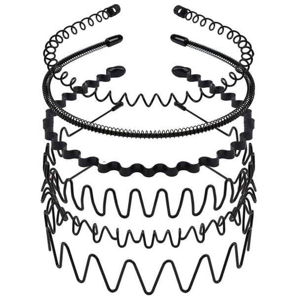5 Pçs Moda Onda Dos Homens Das Mulheres Unisex Preto Ondulado Cabeça De Cabelo Hoop Band Esportes Bandana Hairband Acessórios Para O Cabelo Presentes