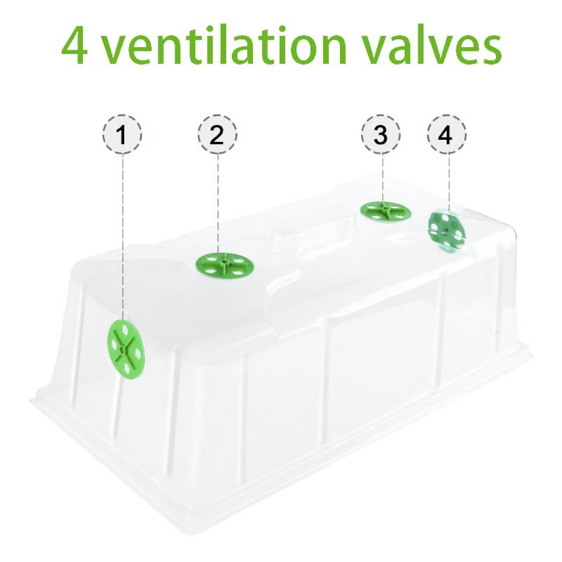 O solo e a água da bacia de mudas não correrão em todos os lugares, gestão conveniente, isolamento térmico e retenção de umidade e tampa transparente e transparente podem ser vistos claramente durante o crescimento das mudas. A tampa está na prisão, não se preocupe soprar, muito forte pode ser laminado juntos e economizar espaço.